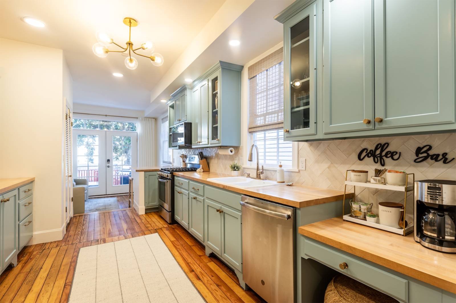 Start your stay on the welcoming front porch, then step inside to a bright and airy layout that flows seamlessly from the front family room through the stunning custom kitchen and dining space, all the way to the cozy rear living room. Open the French doors and unwind on your private deck and fully fenced courtyard—perfect for relaxing evenings.