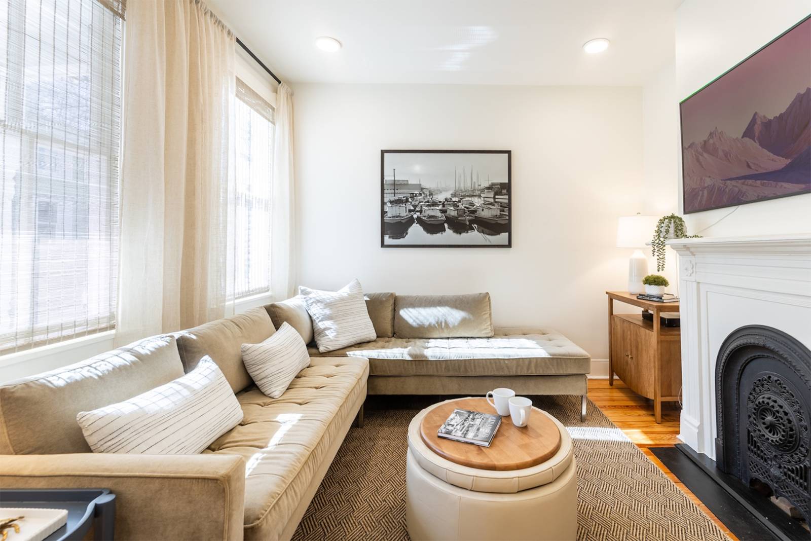 Sunny front family room with comfortable seating