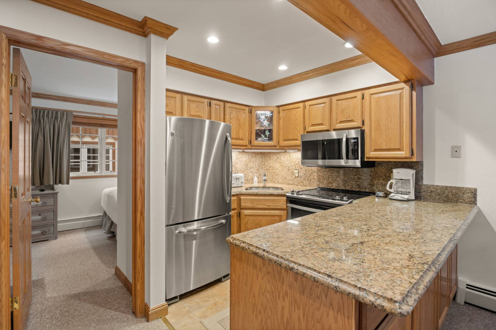 -Fully upgraded kitchen with granite countertops and quality appliances. Upper bedrooms include rare in‑Aspen A/C units, plus washer/dryer and abundant closet space
