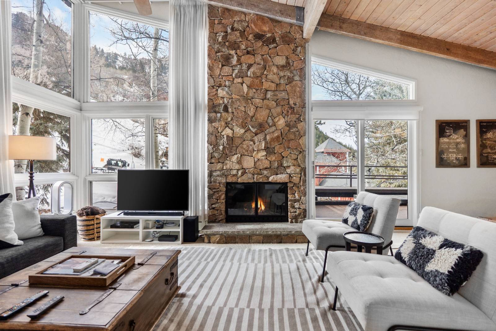 *Air Conditioning & Vaulted Ceilings – Enjoy rare A/C in Aspen, high ceilings, and large windows showcasing dramatic mountain views throughout.