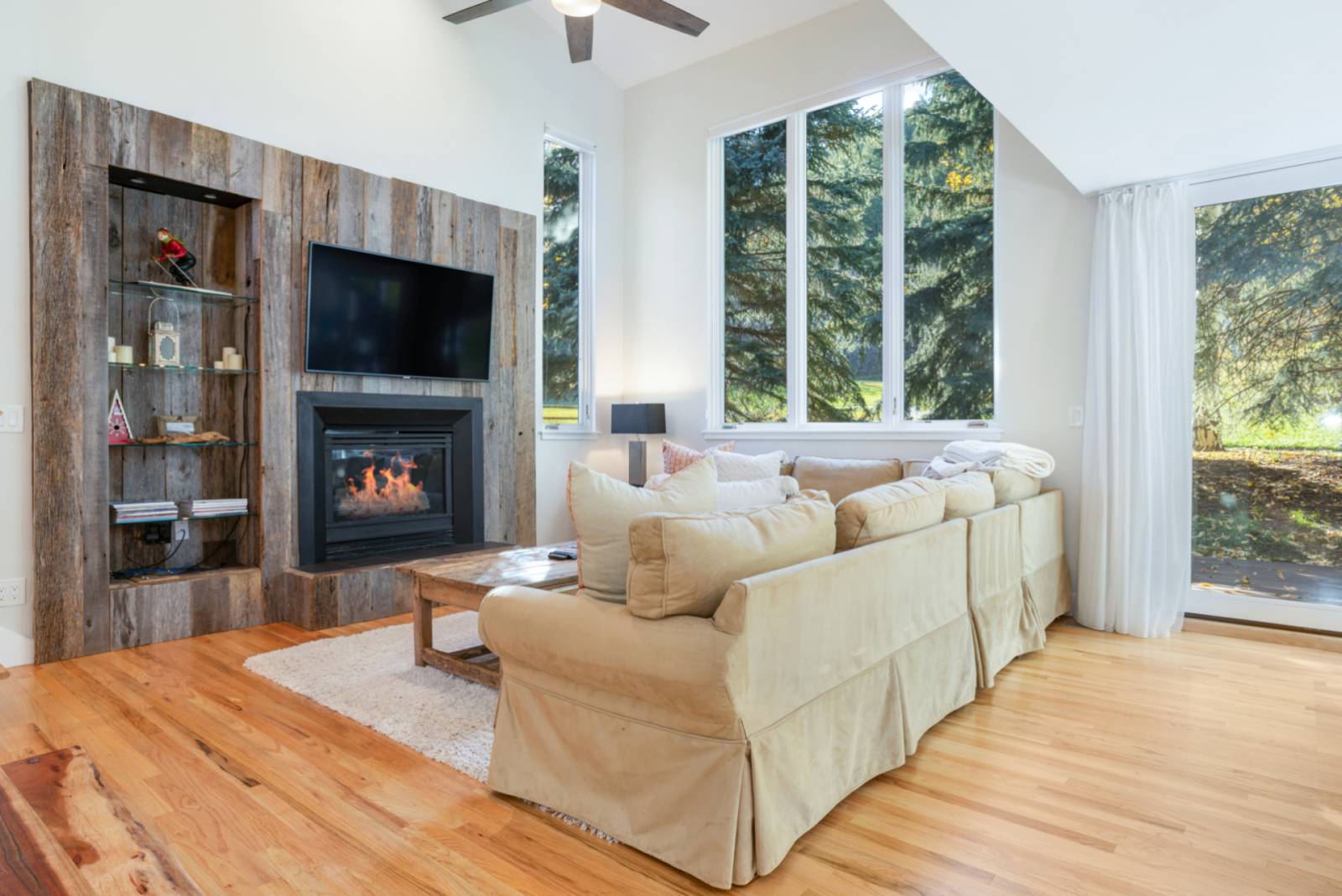 Step inside to a warm and inviting living space featuring a gas fireplace, perfect for cozy evenings after a day on the slopes. The modern kitchen and open-concept layout make entertaining effortless, while large windows fill the home with natural light and mountain views.