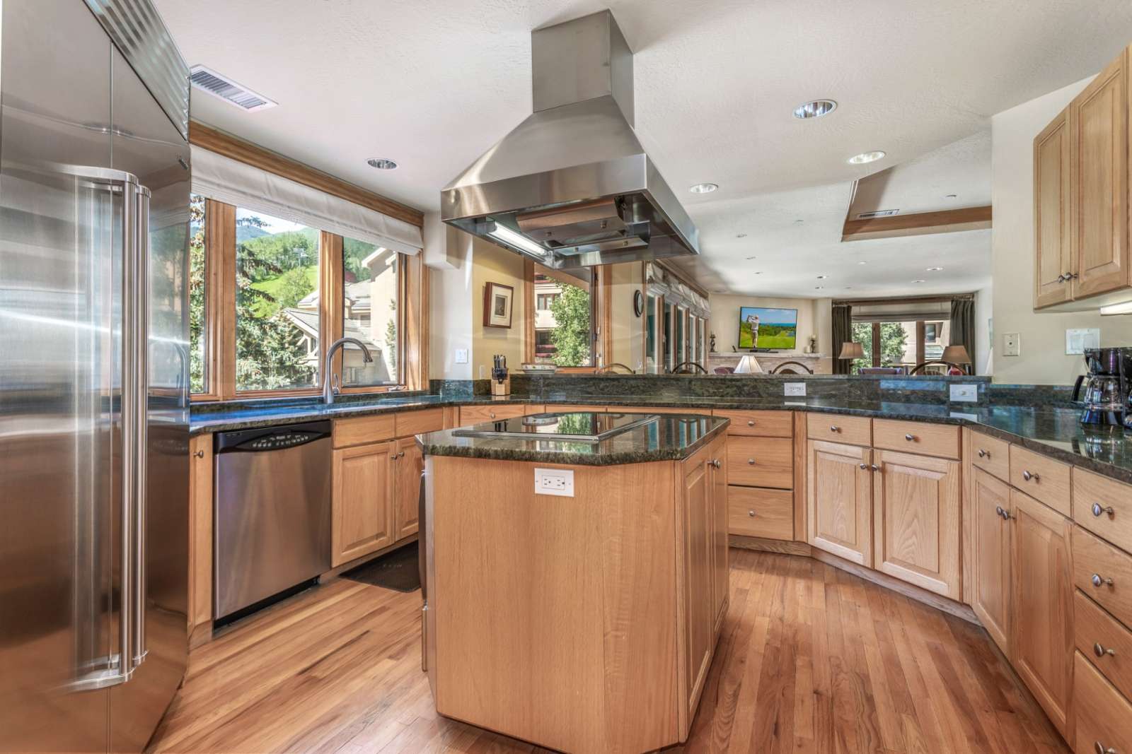 This spacious one level condo is the perfect place to entertain family and friends. The living room provides plenty of seating with comfortable furnishings, large flat screen TV, gorgeous stone fireplace and access to the deck with seating for 4. The windows provide bright natural light throughout the common areas of the condo and provide amazing views of Centennial and Strawberry Park. The fully equipped kitchen includes substantial pantry and counter space and is equipped with a SubZero refrigerator and Gaggenue convection oven with hood system plus bar seating for 4. Enjoy the casual feel of the round breakfast table or the beautiful dining table that seats 8. The smaller table is near the living room and includes seating for 4 guests plus a wet bar.