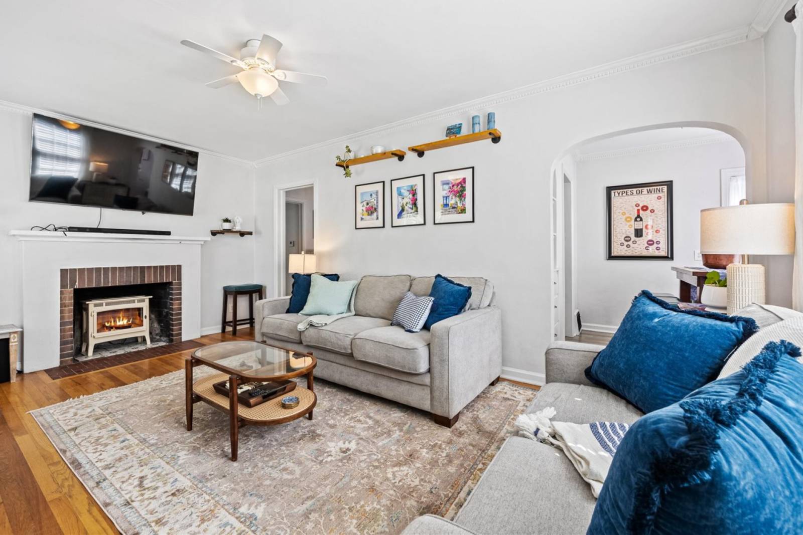 • Classic cottage touches like arched doorways, crown molding, and original hardwood floors