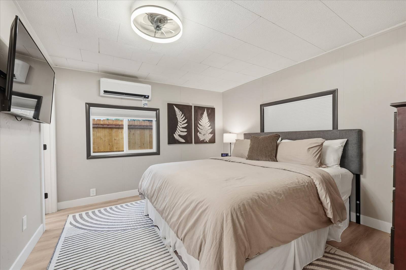 Relax in the spacious living room with a spacious sectional, smart TV, board games, and curated decor, or unwind in the primary suite with its walk-in, fully tiled shower. The bright kitchen is well-equipped for cooking or casual dining, while the fenced backyard offers the perfect spot for your dog to play freely.