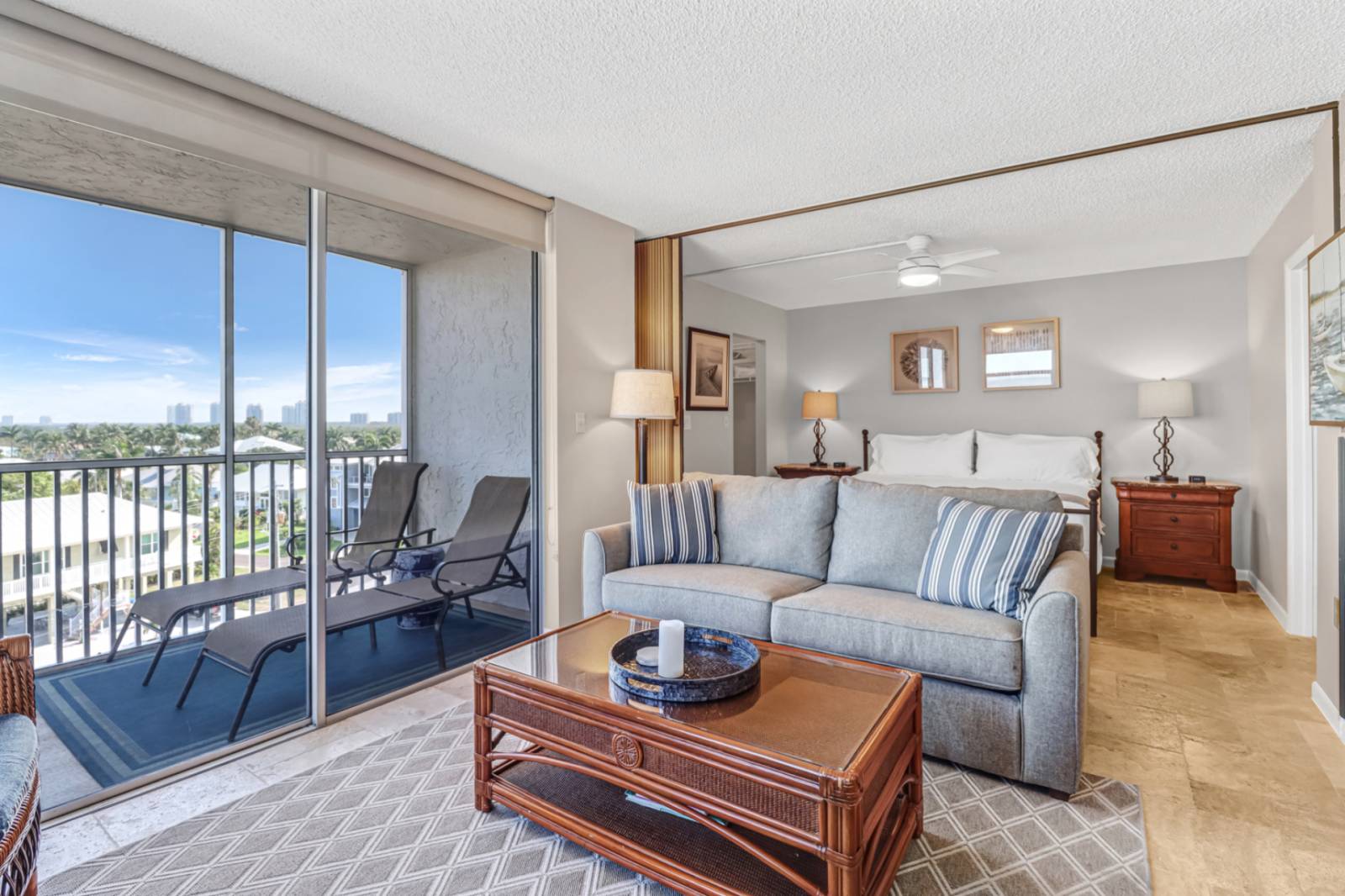 This comfortable, cozy 6th floor Bonita Beach & Tennis studio condo is pleasantly decorated, well maintained and offers many things to accommodate your stay at the beach. The view out of the living room window, sliding glass doors and fully screened lanai will delight you - day or night, your view of the Gulf will be one you won't soon forget!