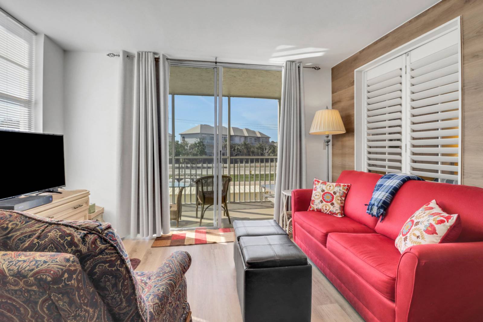 - Living Space: - Impressive vaulted ceilings and plenty of natural light. Large wall mounted TV, modern decor, comfortable furnishing, plus gas fireplace. Full well equipped kitchen and dining