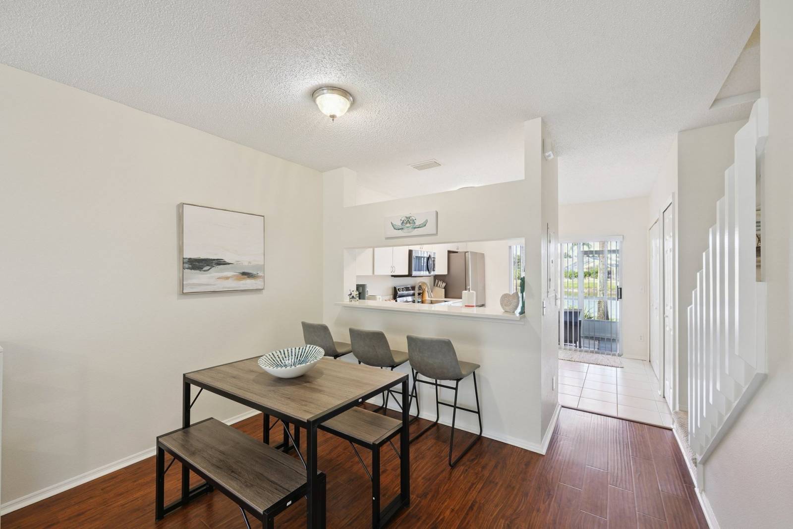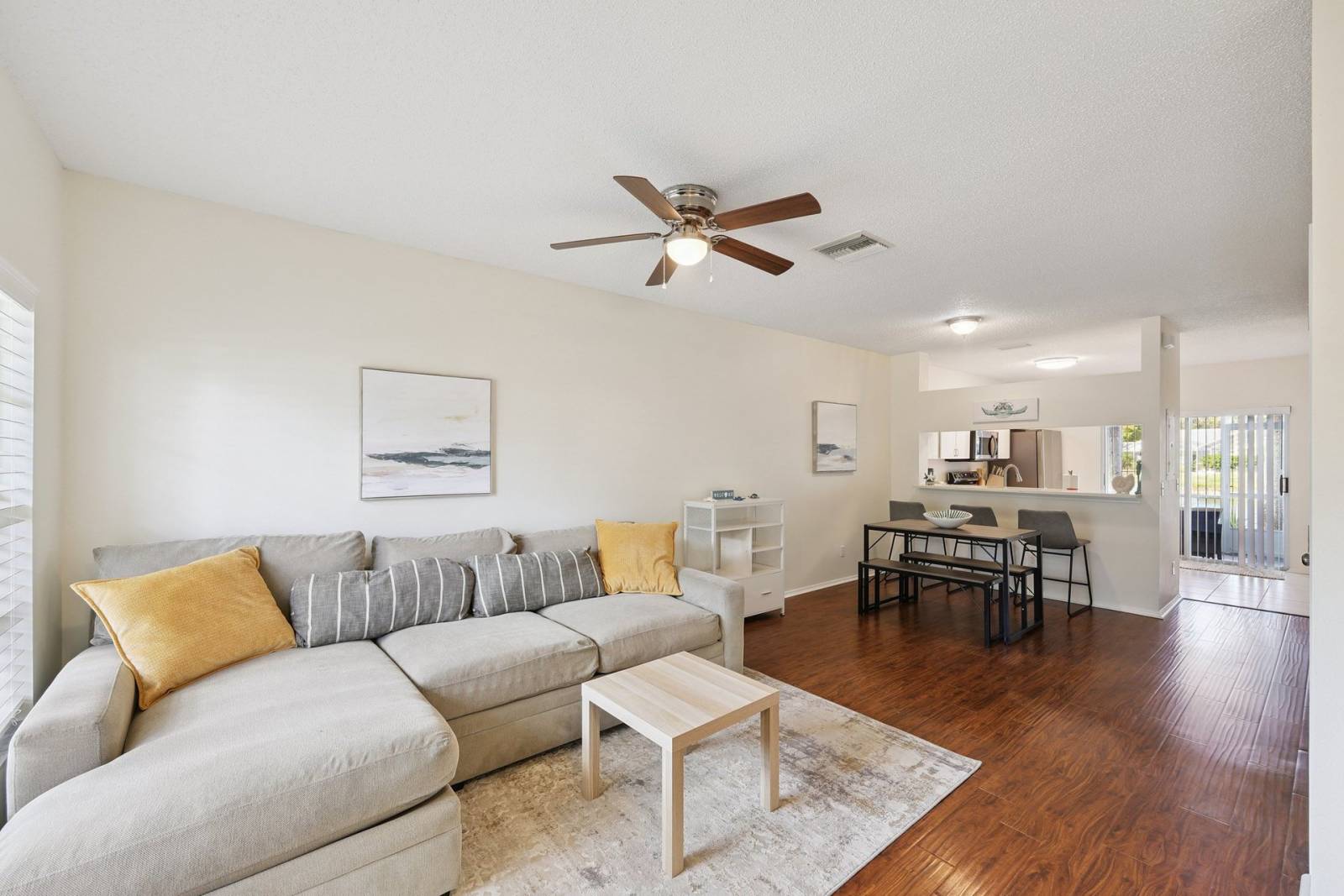 Welcome to your peaceful lakefront townhouse — a bright and cozy Florida vacation rental designed for a truly relaxing getaway. Located in a quiet, palm-lined community, this modern 2-bedroom townhome offers calming water views, comfortable furnishings, and a screened-in lanai overlooking the lake. Wake up to lakeside sunrises, enjoy nature views, and unwind in a space perfect for couples, families, remote workers, or snowbirds seeking a warm weather escape.