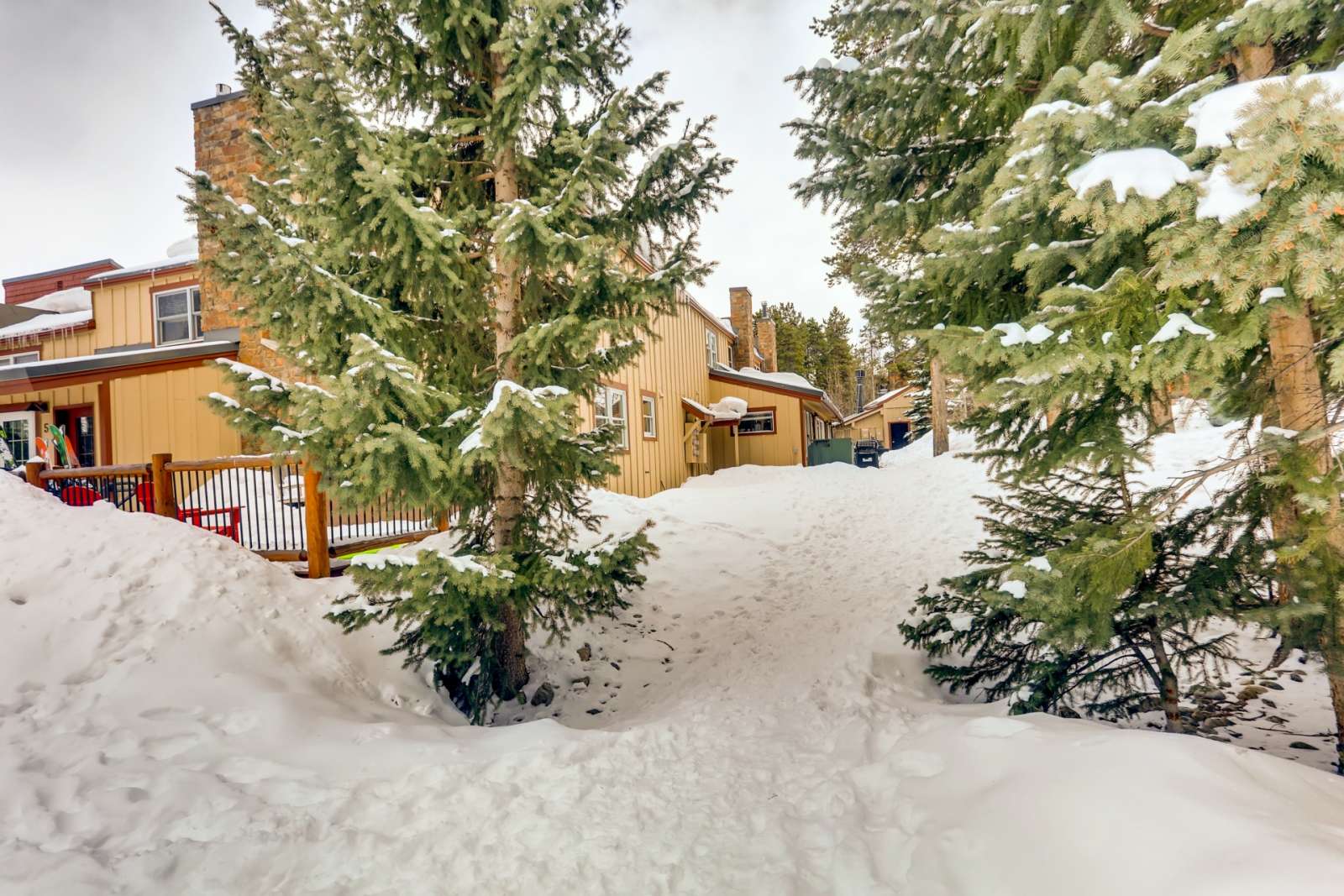 Gas grill on outdoor patio with big table, 1 block to stores & restaurants! Located at the 400 block of Four O'Clock Road, Breckenridge, CO. Spectacular hiking off the back of the patio area on the ski run! 5-minute stroll to the pool and hot tub complex! FREE Town shuttle picks up right out front. PLEASE NOTE: The pool-hot tub complex nearby is closed September 6th - Nov 11th. Pool hours are 12 PM – 8 PM daily.