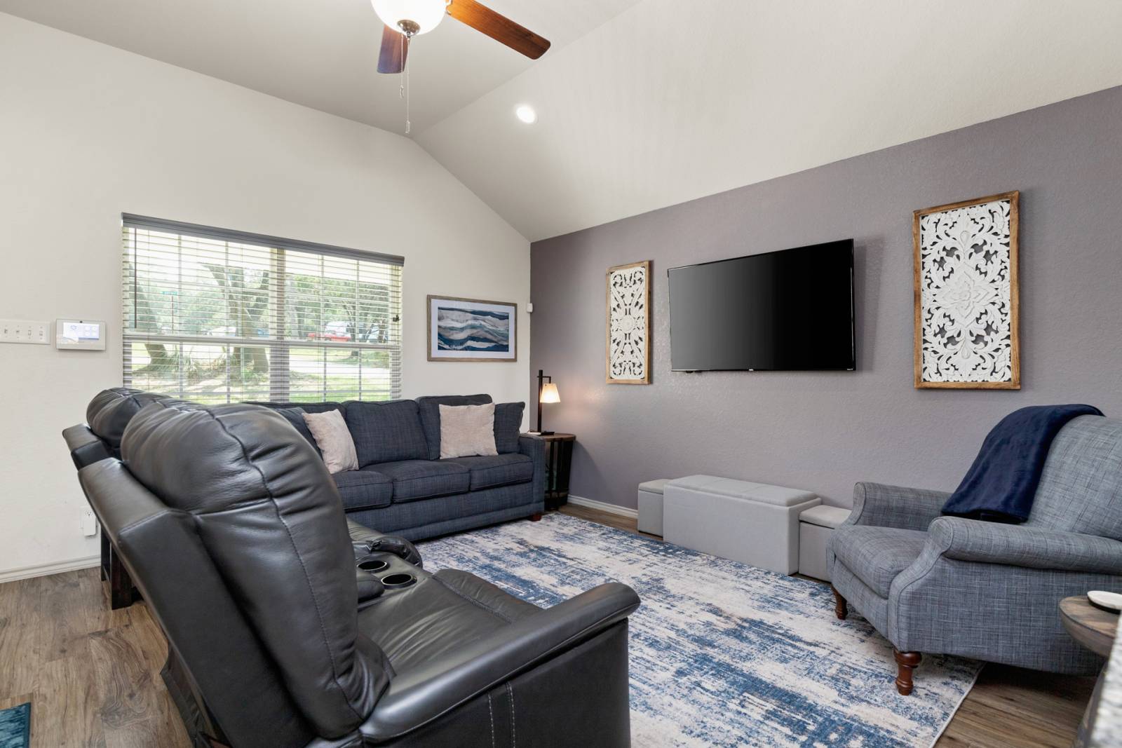 This charming and private three-bedroom, three-bathroom home was built in 2020, renovated in 2024, and is exquisitely well-stocked with all the essentials and additional thoughtful touches, like a leaf blower and a dual propane-charcoal grill, for an enhanced stay.