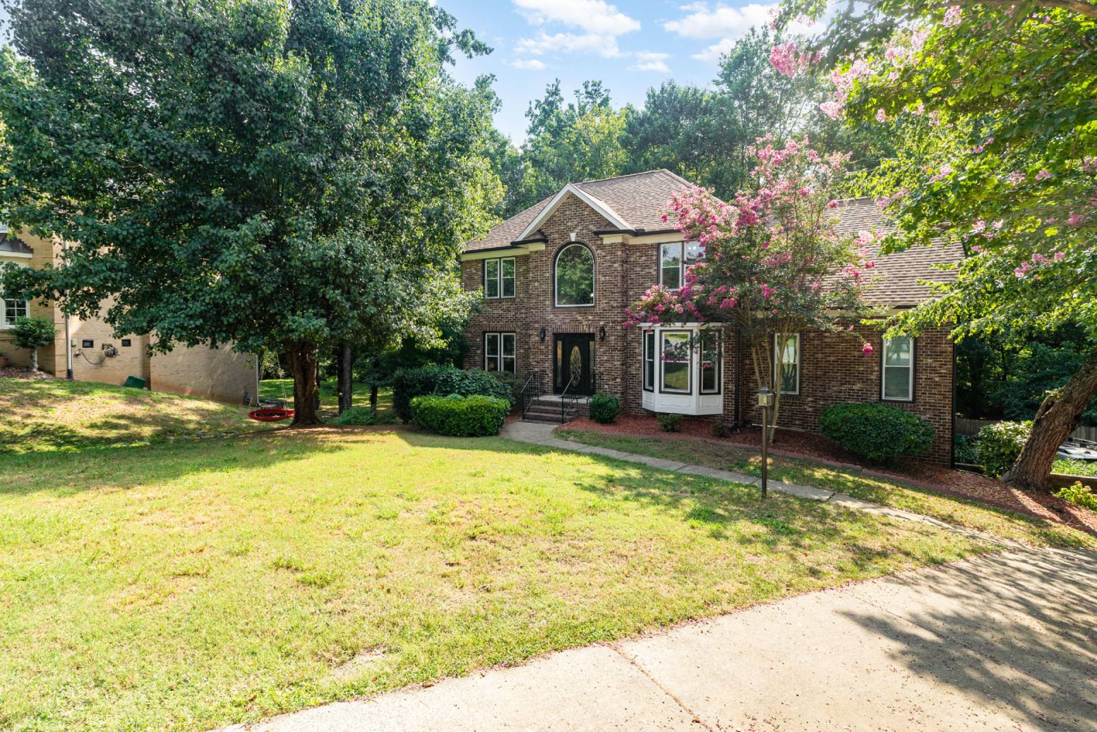 The huge fenced backyard is a private playground for both kids and pets. Enjoy the play set with swings and a slide, or simply relax while the whole family makes the most of the Carolina sunshine.