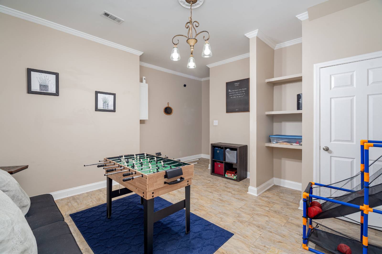 - Private Game Room – Challenge friends and family with basketball, a 3-in-1 foosball/air hockey/pool table, and relax on the sleeper sofa when the games are over.