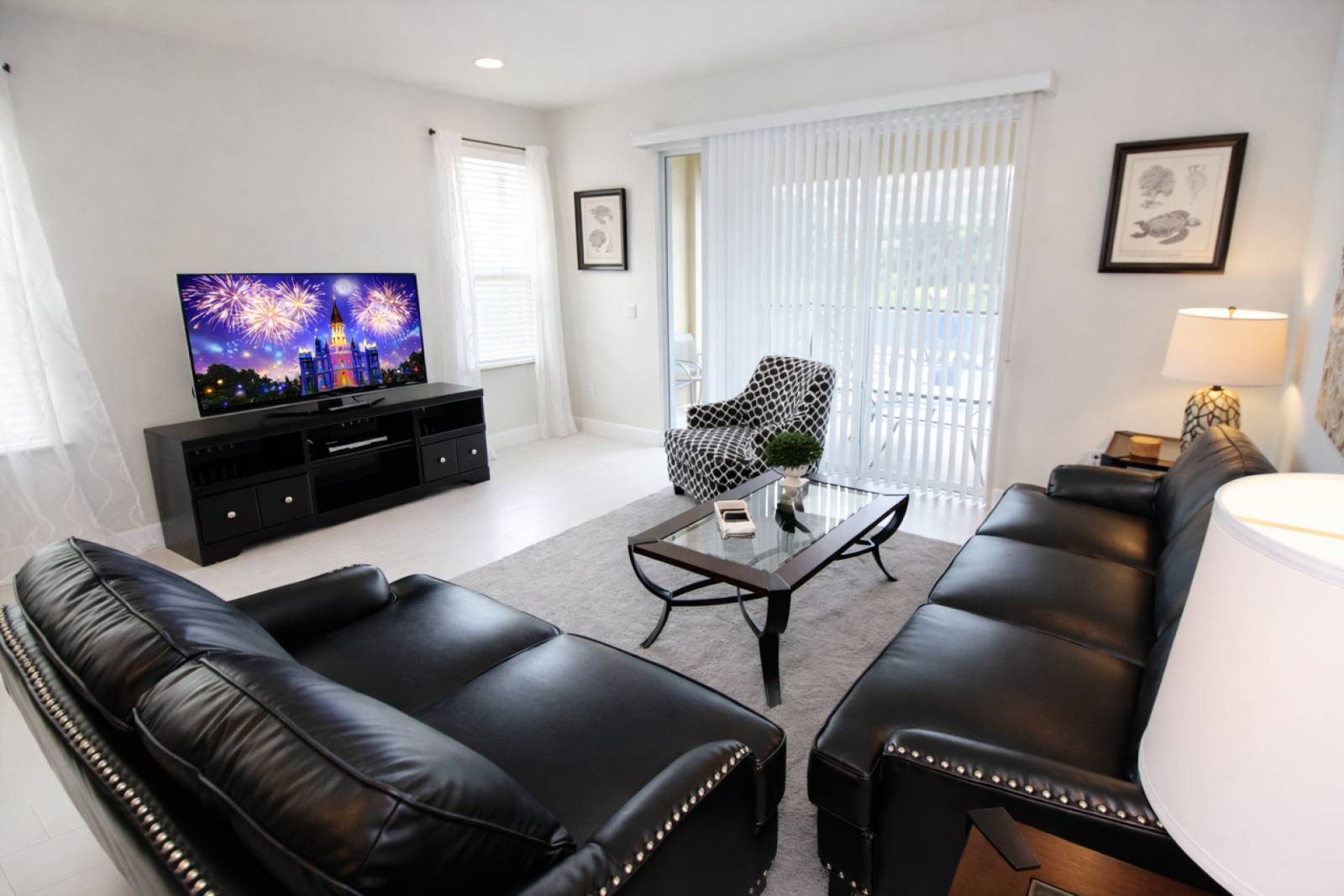Every bedroom has its own TV, so everyone can unwind their way. Designed and furnished with care, this home was made for memory-making—whether that’s splashing in the pool, sharing meals in the open living space, or simply enjoying the peace of a modern retreat that’s close to all the action.
