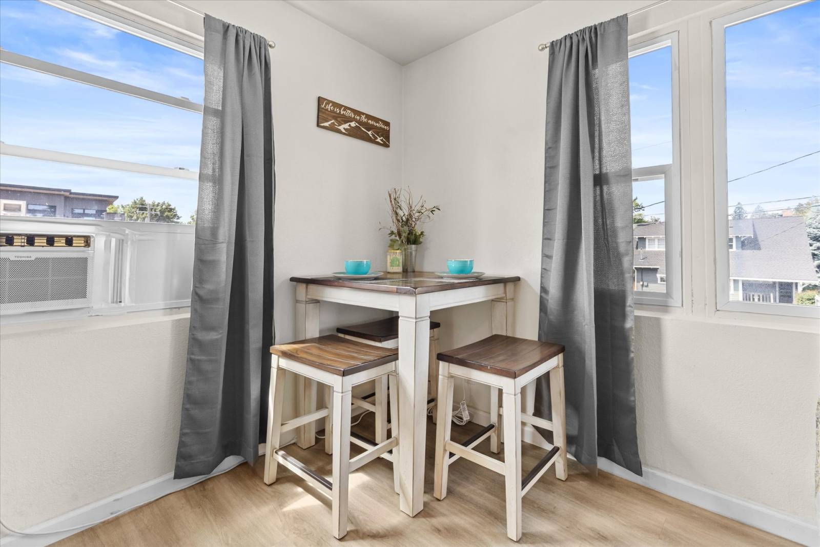Tucked above a local ice cream and coffee shop in the vibrant heart of Midtown Coeur d’Alene, this one-bedroom urban retreat is where vintage soul and modern comfort come to sip lattes together. If you're into character-rich spaces, funky textures, and waking up to the smell of espresso downstairs—this is your place. Right in the heart of Midtown—with a variety of restaurants, bars, and shops just steps away. Safeway is a block away, and downtown Coeur d’Alene Lake and Tubbs Hill are just within walking distance. A compact kitchen includes a full-size fridge, stovetop, oven, microwave, and basic cooking utensils. The living area is equipped with a couch, tv, and dining room table. Ceiling fans and a window AC unit ensure comfort year-round. The bedroom is cozy, quiet, and totally charming—complete with a Queen size bed draped in soft linens, a ceiling fan, and a reading nook for late-night journaling or daydreaming. Travelers, business visitors, or anyone seeking a cozy, character‑filled home base in a buzzing, walkable neighborhood. With all essentials included and local shops right downstairs, it offers a seamless, “live like a local” experience. Book today or inquire with questions, we got you!