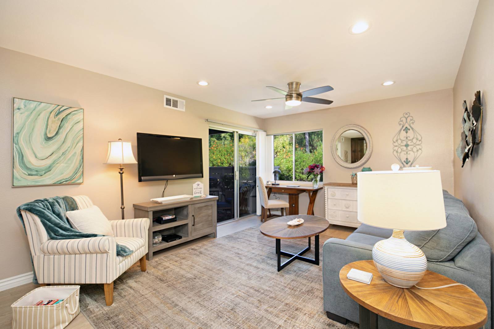 Living Room with full sized sleeper sofa for an extra person