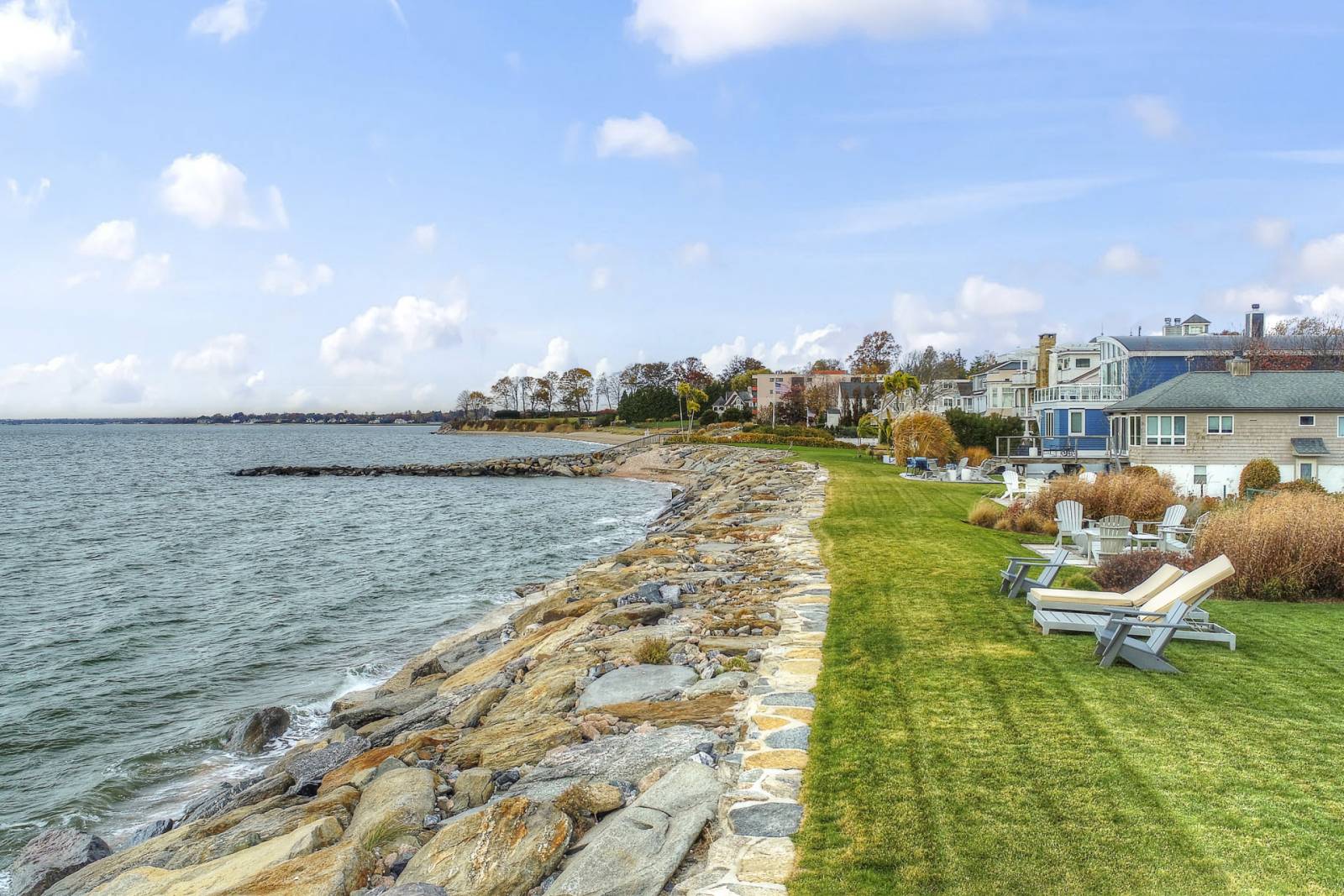 From here, you’re just steps away from the stone seawall and direct water access. Depending on the tide, enjoy sandy stretches for wading and exploring.