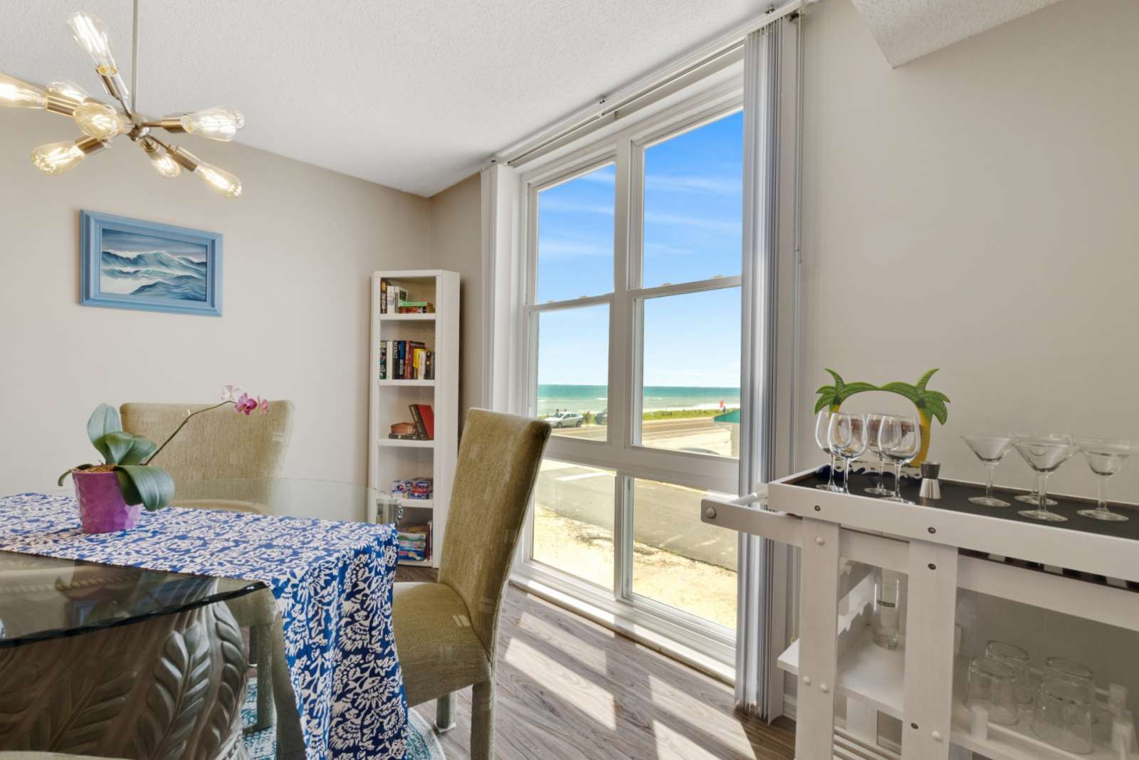Inside the Pelican Suite, you’ll enjoy a comfortable king bedroom, a full kitchen for preparing meals, and a living room with a sleeper sofa that converts to a queen bed—perfect for additional guests. This is a spacious one-bedroom suite, on the second floor. Please note there is no front-facing view of the Atlantic from this unit. The ocean can be seen from the windows on each side of the structure.