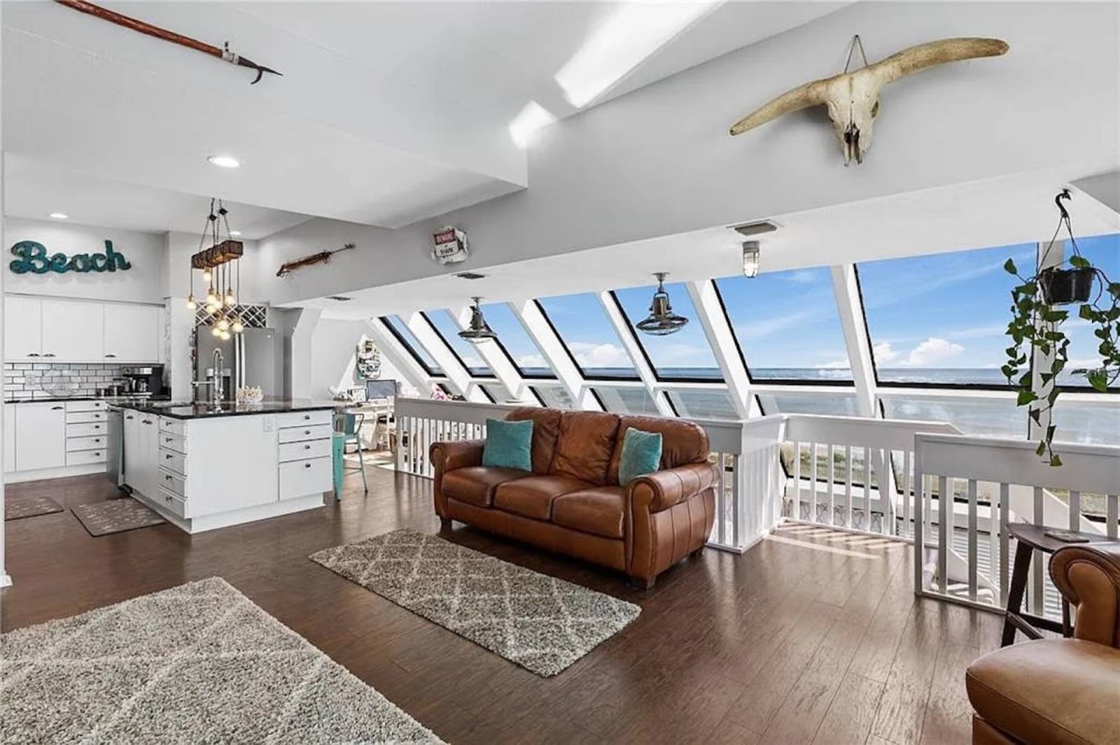 An interior staircase leads to the lower level, where you’ll find a second living area with an expandable couch, perfect for relaxing or accommodating additional guests. This level also includes an additional bedroom and a private patio that overlooks the ocean—an inviting spot to enjoy your morning coffee at sunrise or unwind in the evening breeze.