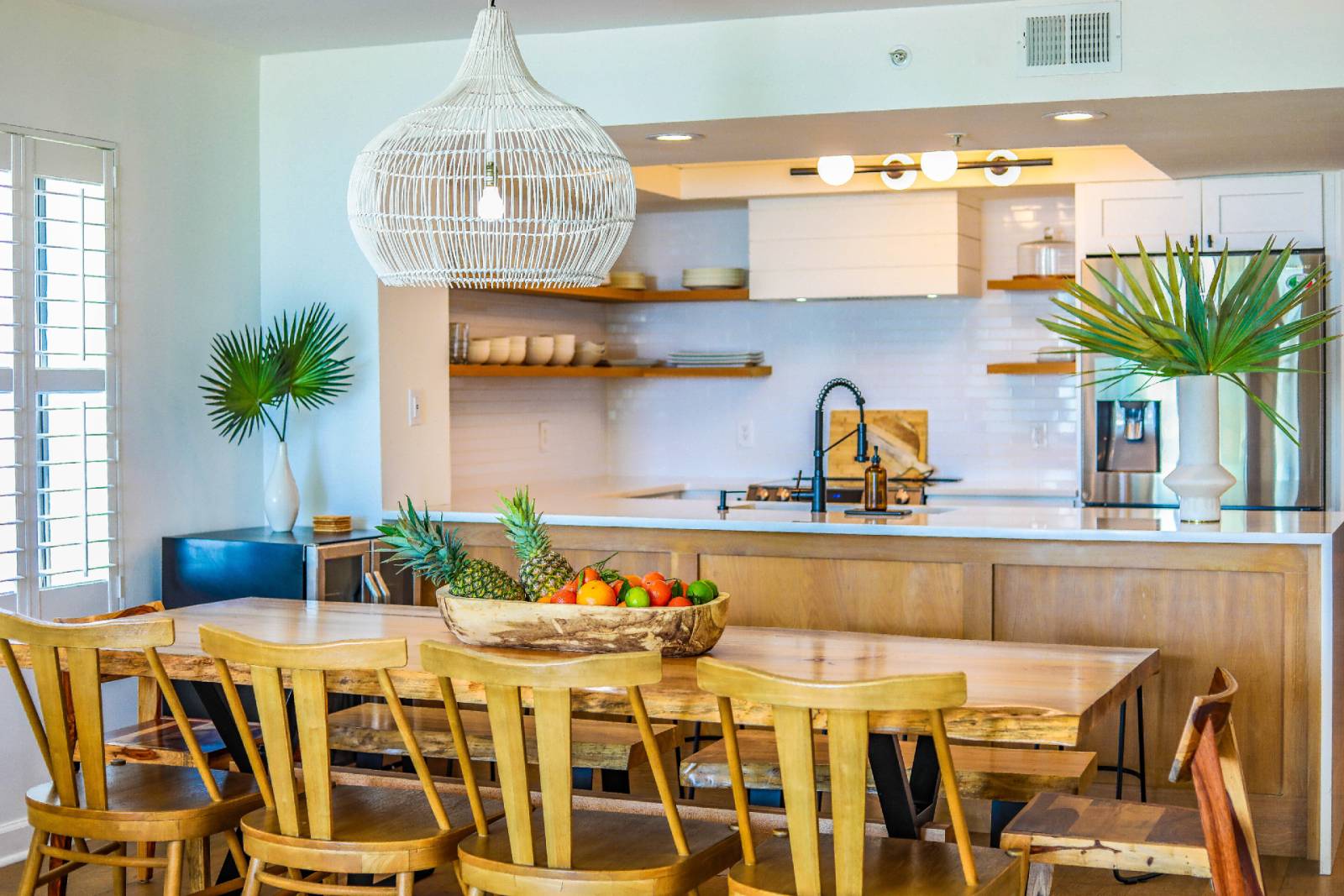 - Dining room table seats 10 and kitchen counter seats 4.