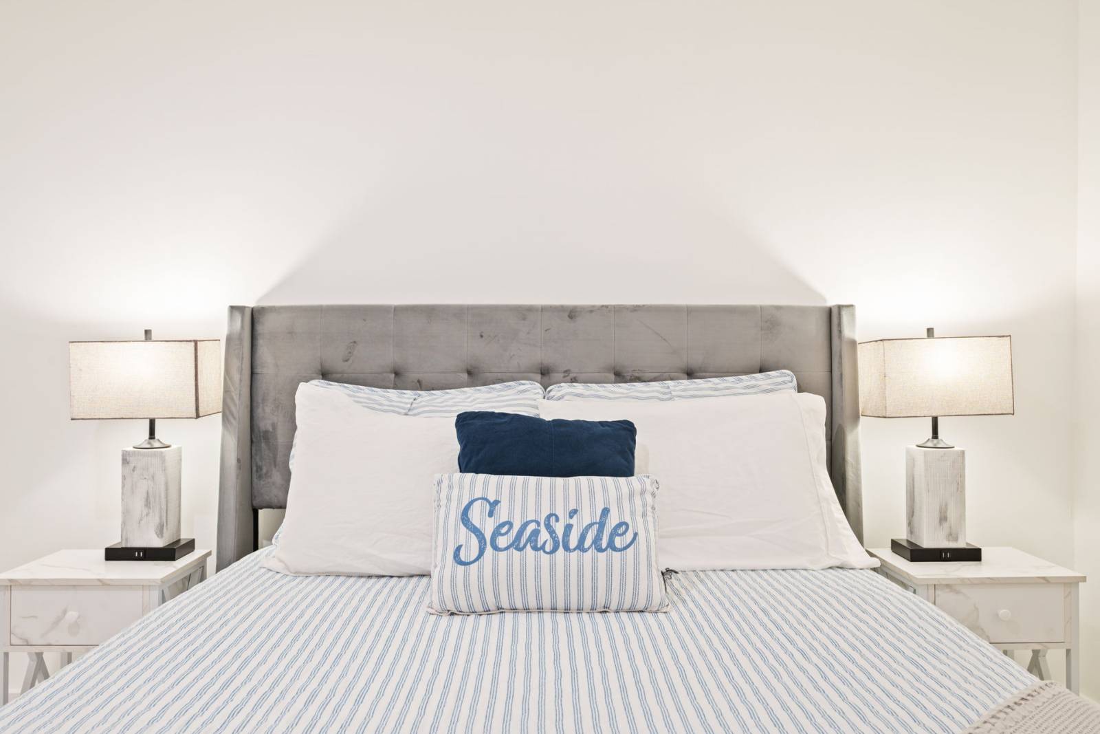 • Bedroom 3: Queen bed with comfortable bedding and soft lighting, perfect for relaxation after a day at the beach.