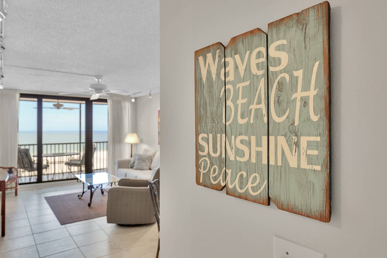 This 5th floor unit has 2 bedrooms, 2 baths and sleeps 4. The screened enclosed balcony, furnished for outdoor dining, is accessible from the living room and master bedroom looks directly over the Gulf, so you will never miss a sunset during your stay at Shamron Beach.
