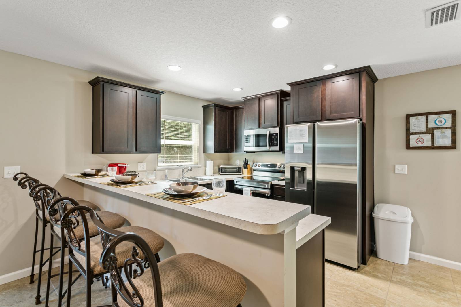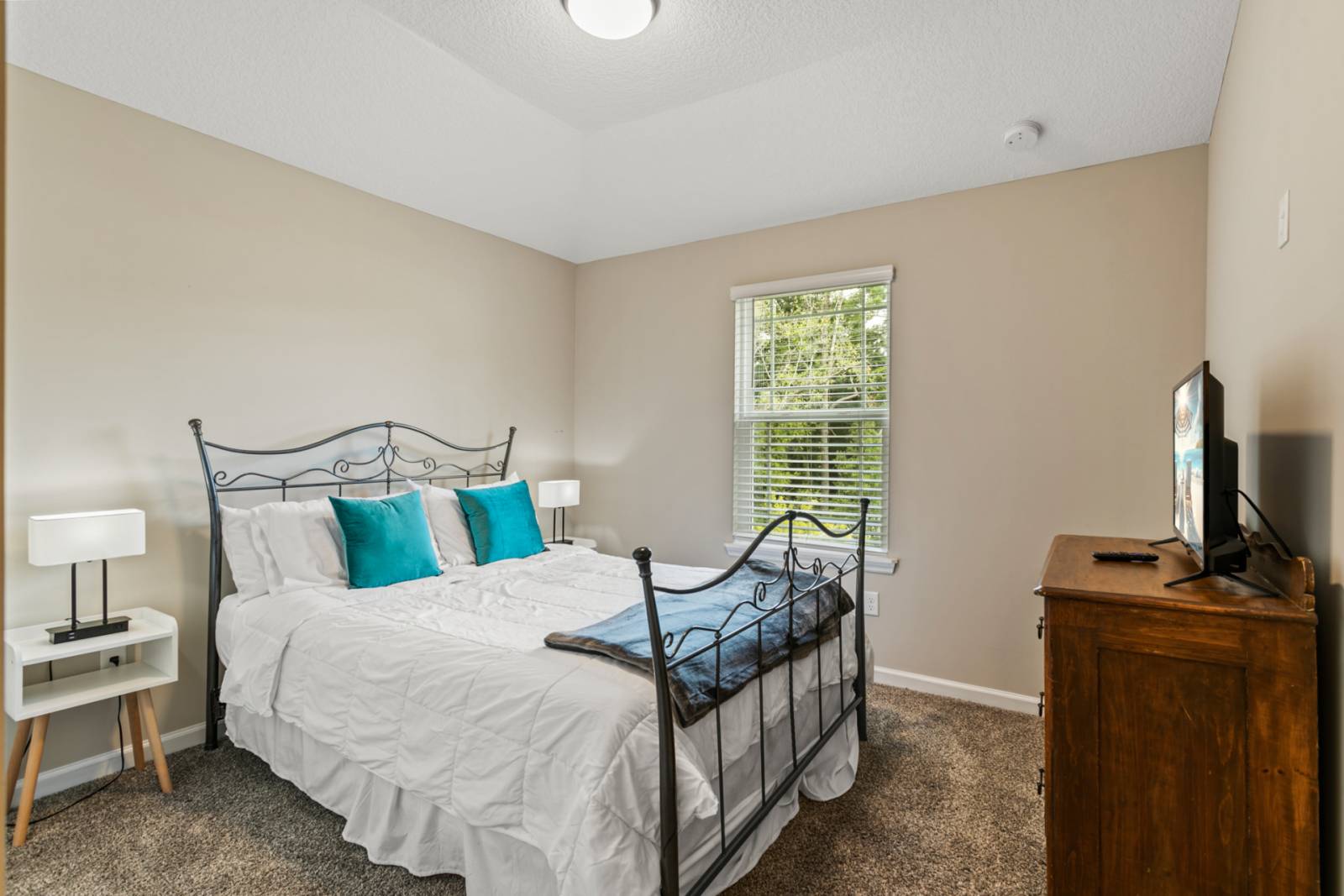 This end-unit townhouse in charming Green Cove Springs features 3 bedrooms, 2.5 baths, and sleeps up to 6 guests. Relax in the owner’s suite with queen bed, ensuite bath, walk-in closet and Smart TV, or unwind in one of two guest rooms—one with a queen bed and streaming TV, the other with twin bunk beds and a retro pong game.