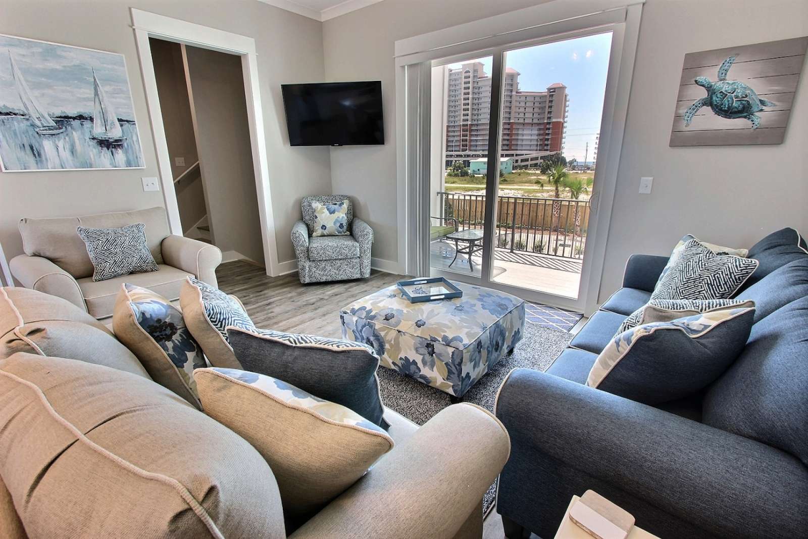 Awesome home! Clean perfect for a family! Close to beach. Walking distance with a 5 year old, 3 year old, and 2 yo. My mom (who broke her toe before the trip) was the steps but if not for her toe she would have be fine. Picture is the view from our room!