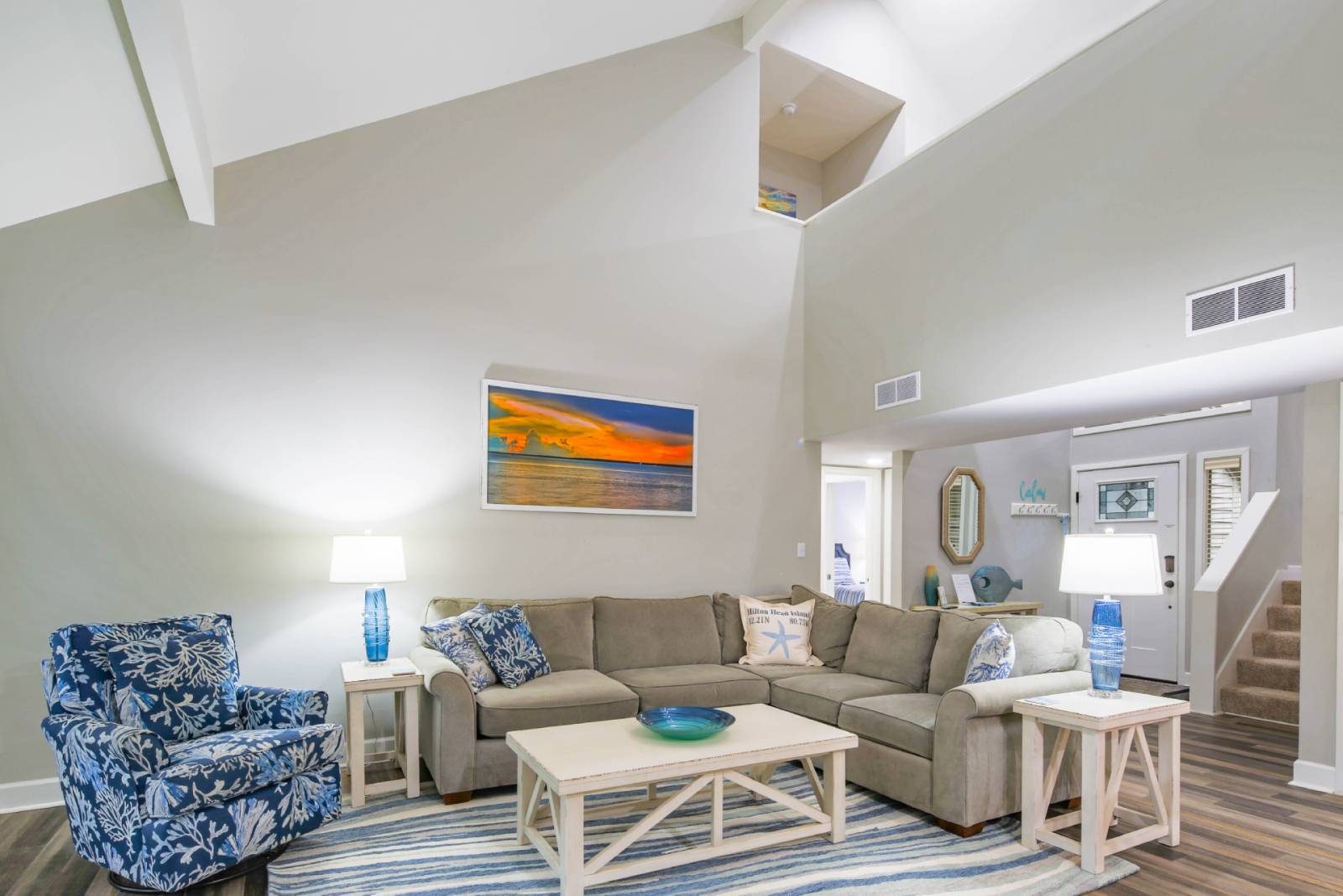 Book this tranquil & serene vacation home now! Conveniently located in the heart of Sea Pines Plantation, Calm Villa Sea Pines is the ideal family vacation home. This completely renovated, 2-story, end unit villa within the Inland Harbour community is perfectly situated across Lighthouse Road from the bike path, providing excellent access to all of Sea Pines’ incredible amenities & activities. You will be just a short walk or bike ride away from The Shops at Sea Pines Center (500 feet), Harbour Town (1/2 mile), and the complimentary Sea Pines Beach Club (just over 1 mile). Guests of Calm Villa are welcome to swim in and play tennis on the Inland Harbour community pool and tennis courts. With new, upgraded furniture, luxury vinyl plank flooring and large smart TVs throughout, Calm Villa provides a relaxing, family-friendly retreat.