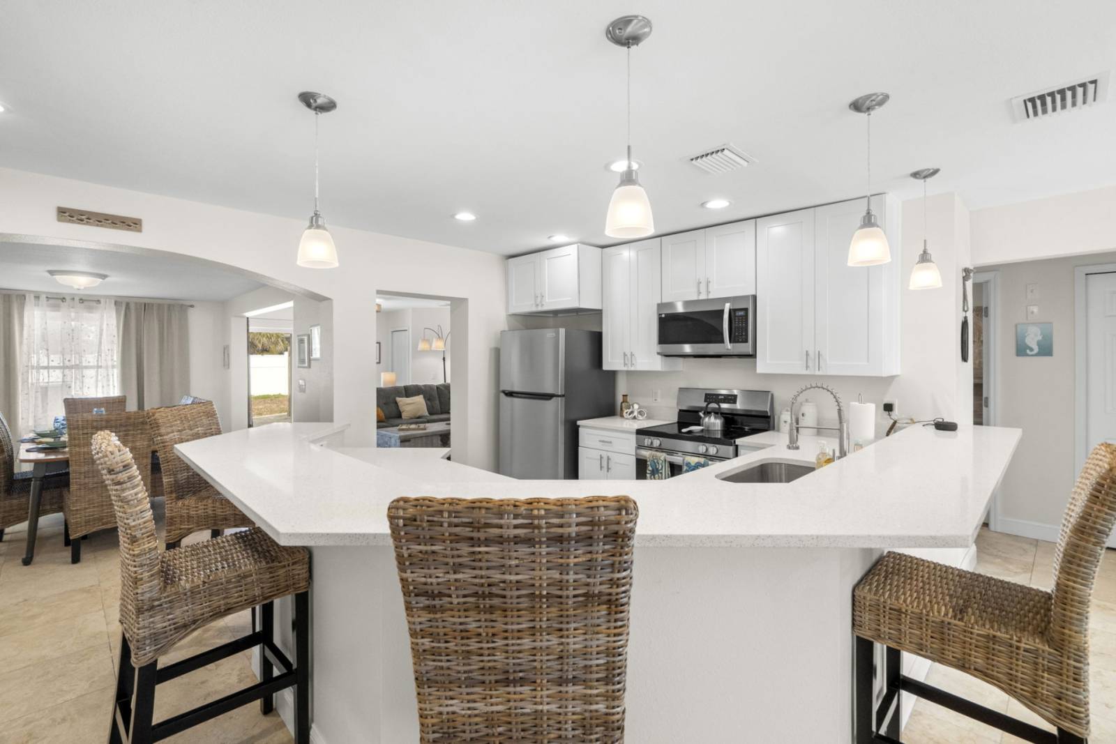Live the Florida beach life in your own private piece of paradise! This pet friendly 3-bedroom, 3-bathroom home is nestled into a quiet neighborhood that is conveniently located just 2.5 blocks from the beach, within walking distance to excellent restaurants and a short drive to several local attractions!