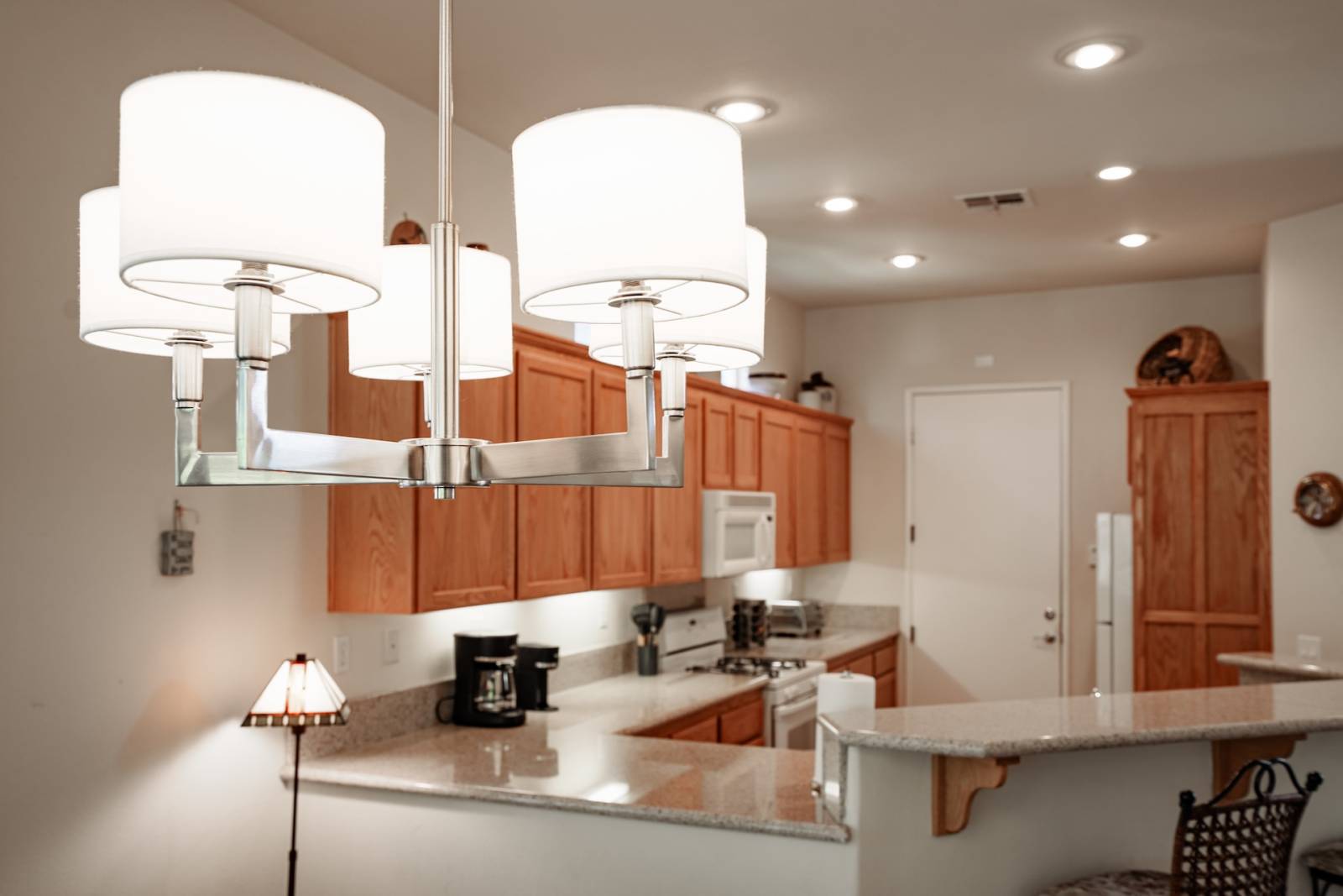 The fully-equipped kitchen is an ideal spot to cook a full-course meal for the entire gathering.