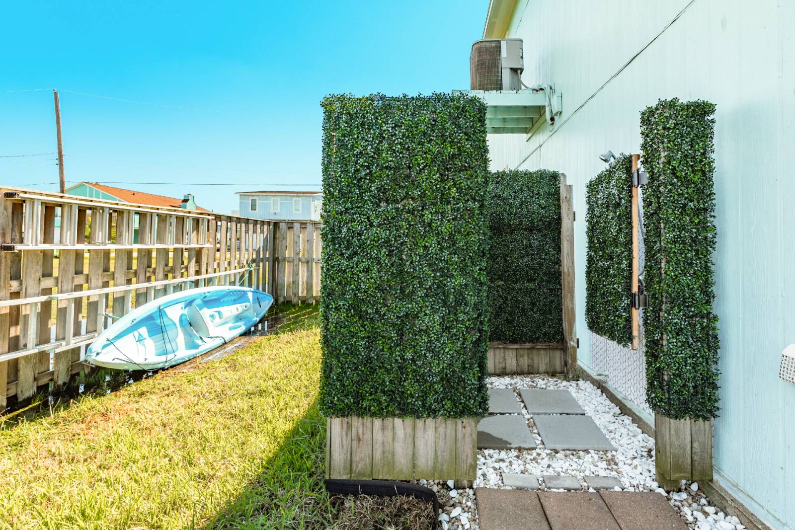 This newly renovated home is only a short 5 minute drive to the beach. Take the kayaks out for a ride and bring along the beach toys provided for a fun filled day on the water. Take a quick rinse in the outdoor shower and wash the sand away before enjoying the large fenced back yard full of outdoor games. Enjoy a round of Corn Hole or challenge each other to an oversized Connect Four game!