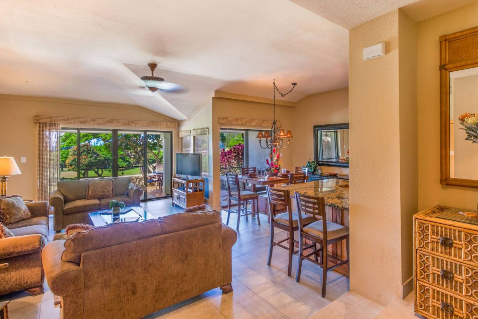* Living area has sliding glass doors that open to the lanai where you won't want to miss the colorful sunsets