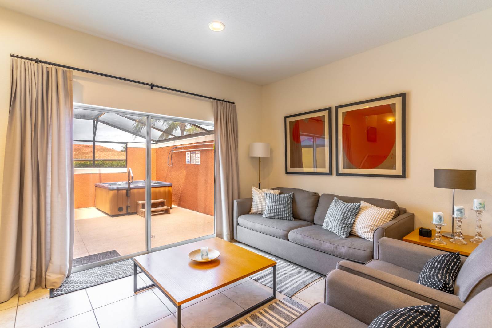 • Access to the private patio with dining and lounge seating, and a private hot tub!