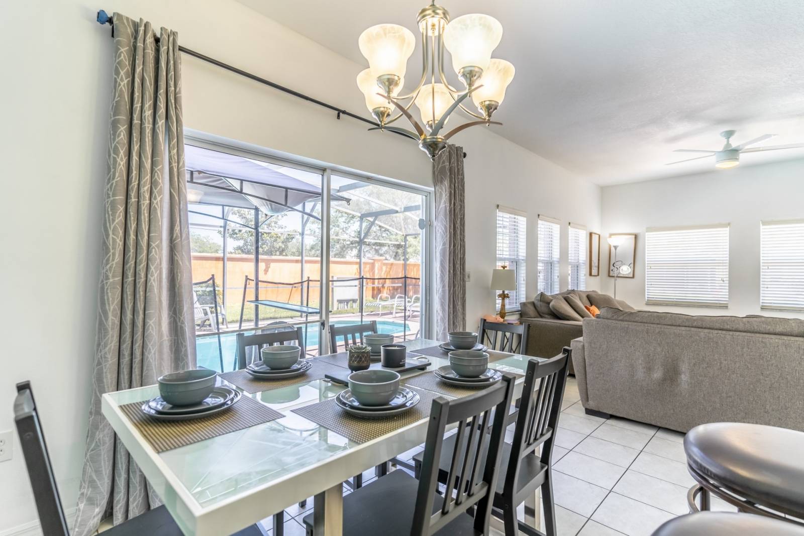 The fully equipped kitchen makes it easy to prepare everything from family dinners to quick snacks. You’ll find all the cookware, utensils, dinnerware, and appliances you need to entertain or fuel up before heading out to the theme parks.
