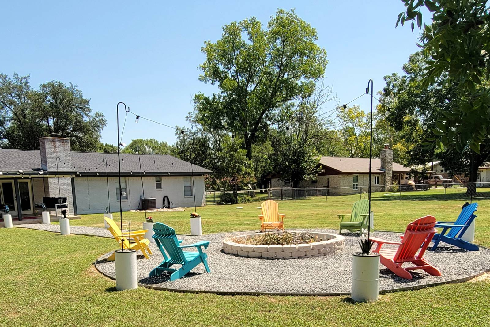 Outside, you'll find a private backyard with a stunning Texas themed patio area, perfect for enjoying a morning coffee or a BBQ with your loved ones. The expansive yard offers never-ending views of the Texas Sky and all it's beauty, A newly renovated fire pit area with seating for 6, and fun games like volleyball, and cornhole! The neighborhood is peaceful and family-friendly, providing a serene environment for much needed rest and relaxation.