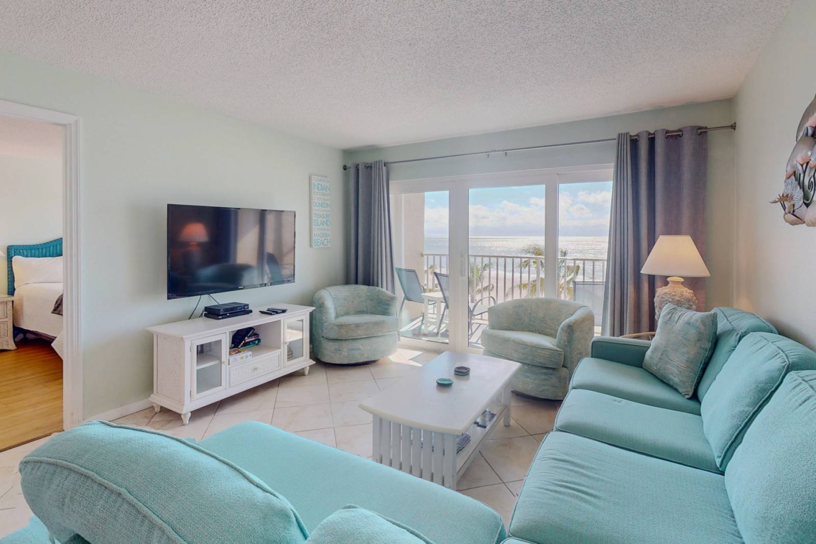Directly on the beach and directly across from John's Pass Village. Best Location. Best View!