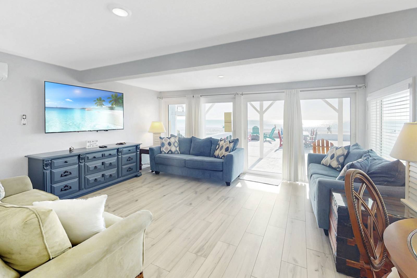 Step through the back door and onto the patio—your feet will be in the sand within seconds. The beachfront outdoor space includes: