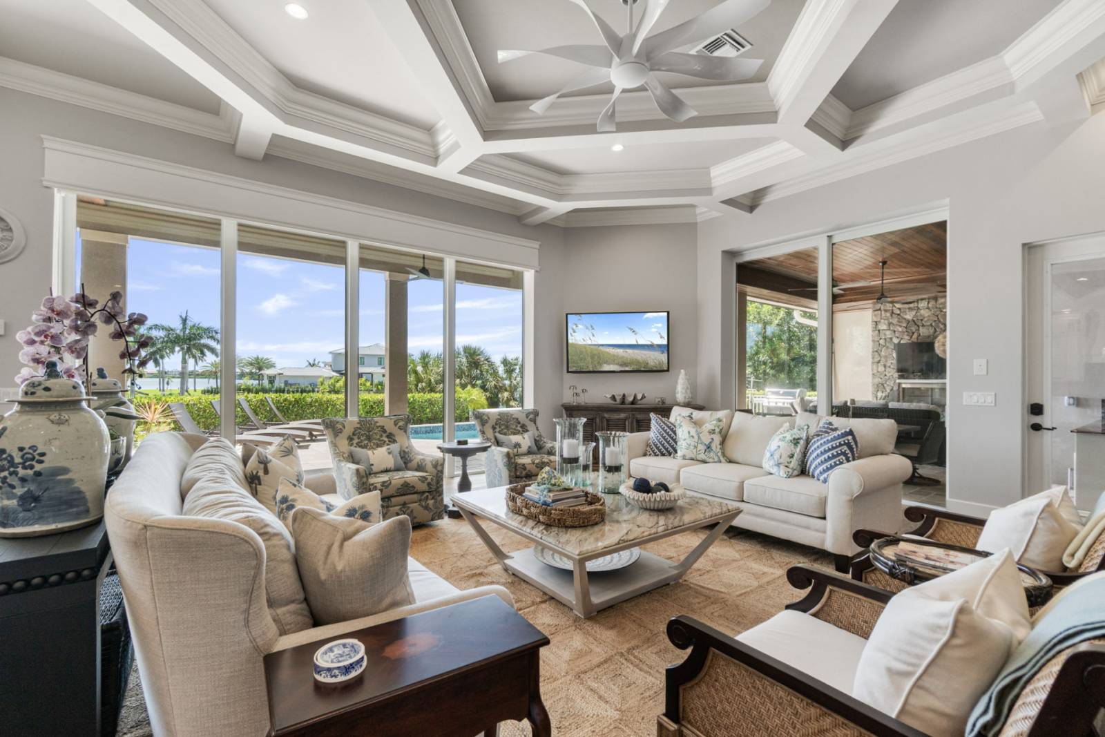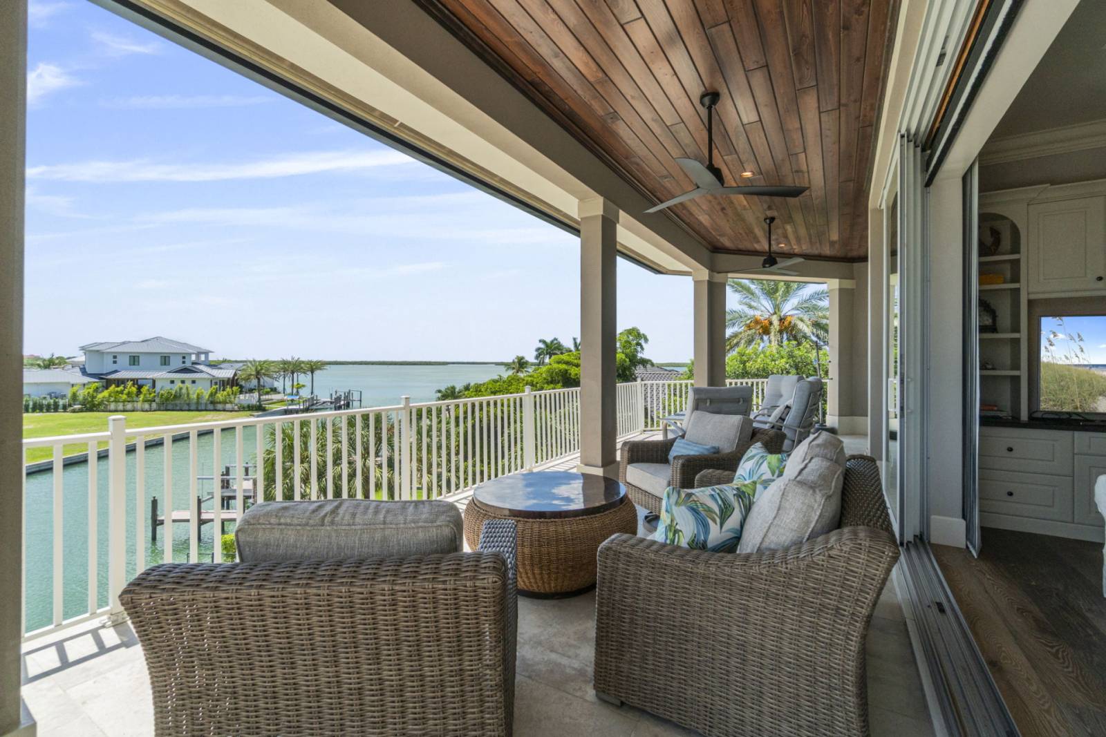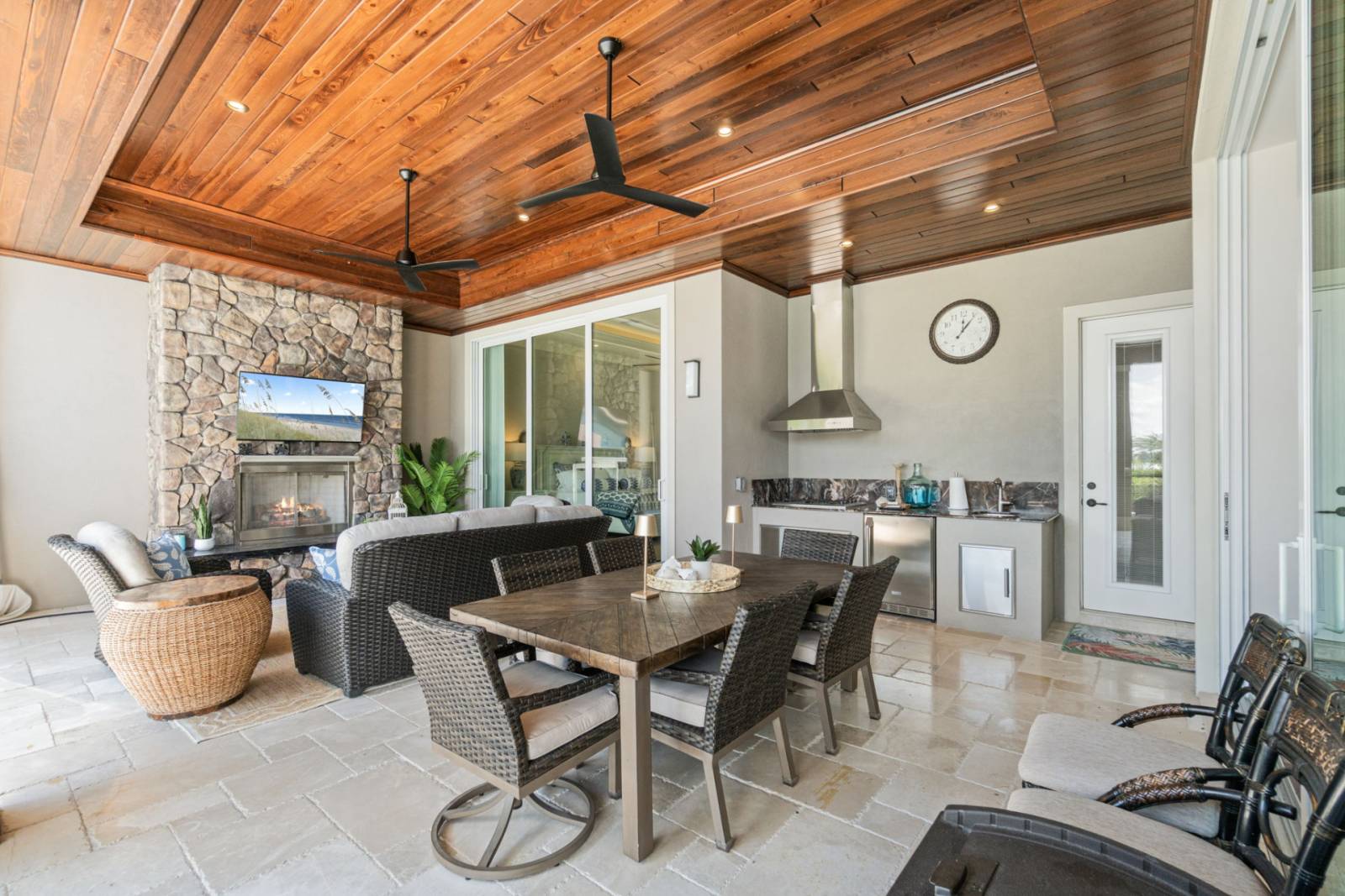 Relax on the expansive lanai by the resort-style pool and spa, enjoy the summer kitchen and outdoor living room or head down to the wood-burning fire pit to take in the waterfront views. Inside, high end coastal-inspired design meets top-of-the-line finishes with a chef's kitchen, a wet bar and laundry area on each floor, and panoramic water views from the second floor balcony.