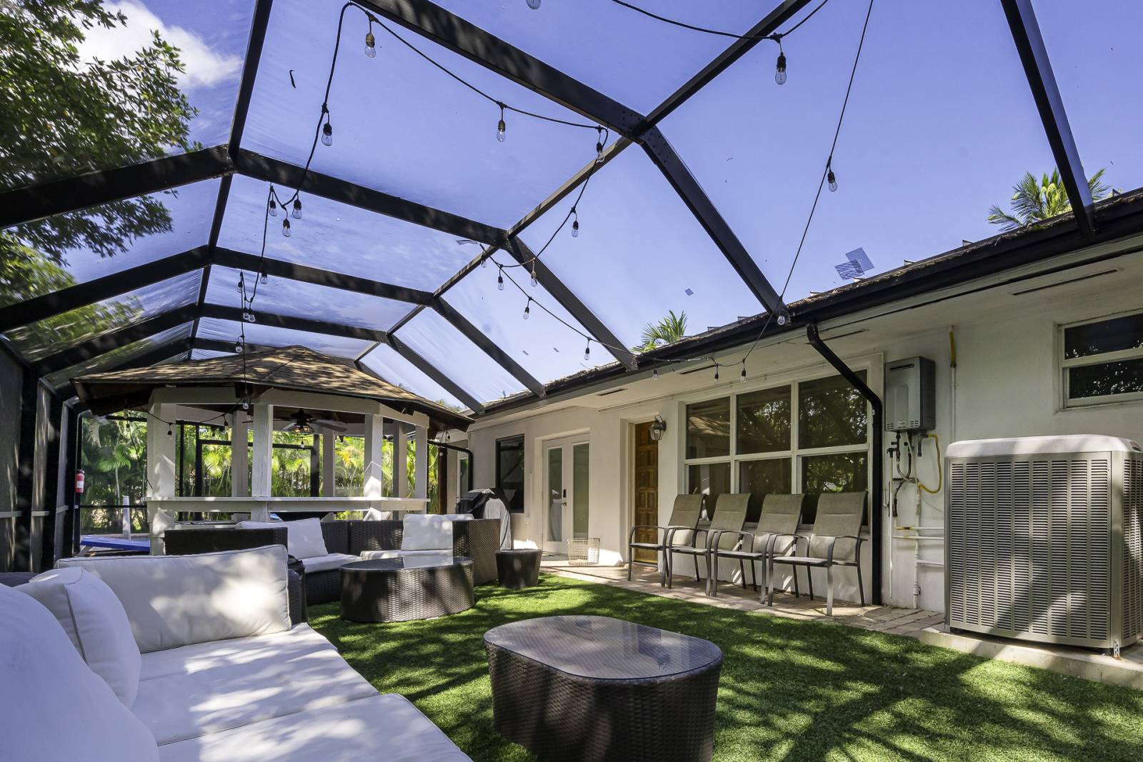 Private lakefront luxury in Miami with a resort-style backyard, pool, gazebo, and ocean-access waterway.