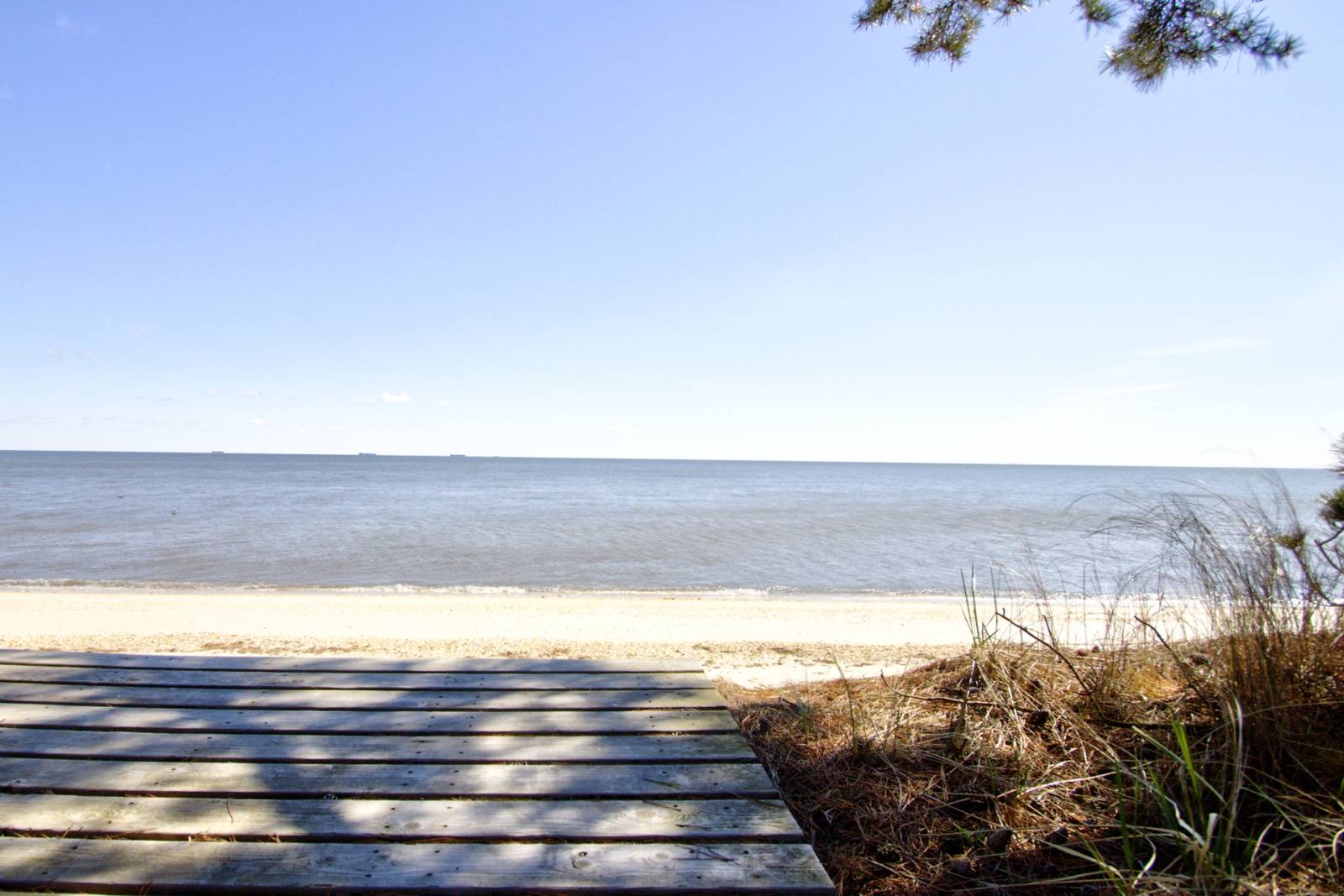 Wake up to sweeping bay views and the sound of gentle waves at this waterfront, pet friendly coastal cottage—a peaceful hideaway tucked directly on the sand in quiet Slaughter Beach just a few minutes from Milford, where you can find everything you'll need. The beach is 3 steps down from the end of the path in the photo.
