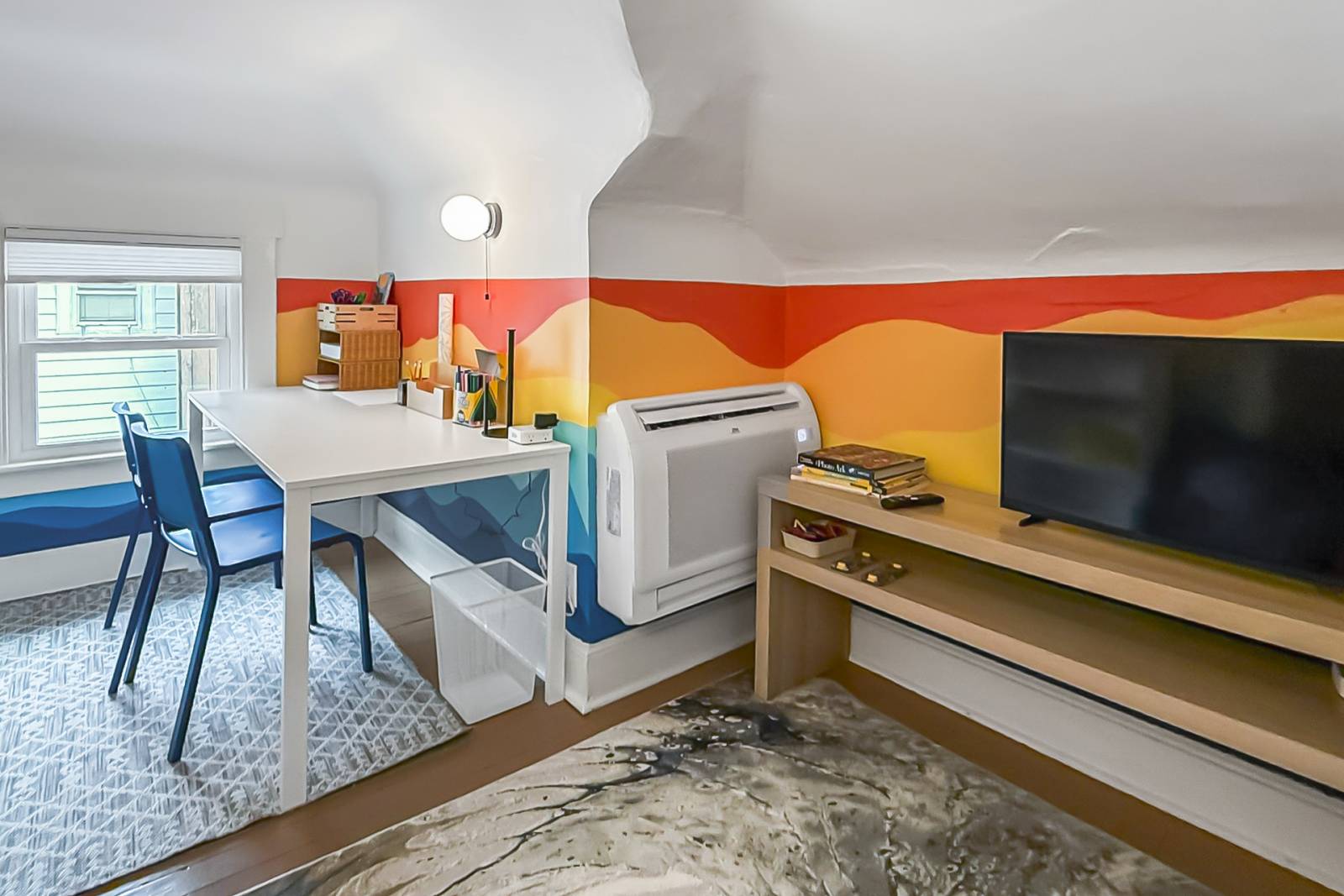 - Bonus room off the Primary includes a trundle bed (2 twin beds), perfect for extra guests or little ones. This room also offers office space, including a desk (w/ electric stand desk option) and an ergonomic office chair.