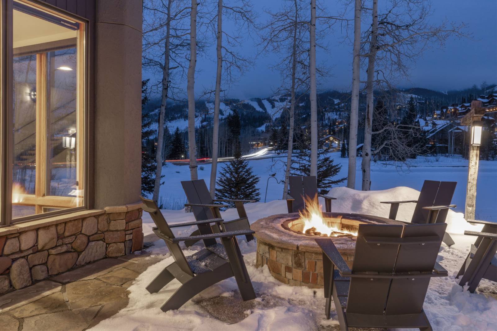 Floor-to-ceiling windows in the formal Great Room offer breathtaking views of the ski resort and Elks Lake, while high ceilings and natural light bring the outdoors in. Relax by the stone fireplace with a movie or good book, or gather the group for games at one of the 3 sitting areas. The chef’s kitchen offers high-end appliances, a huge center island and a breakfast bar that overlooks the formal dining area and Great Room. Step outside to the private hot tub, fire pit and outdoor kitchen nestled next to the beautiful lake stocked with trout for fishing during the summer months!