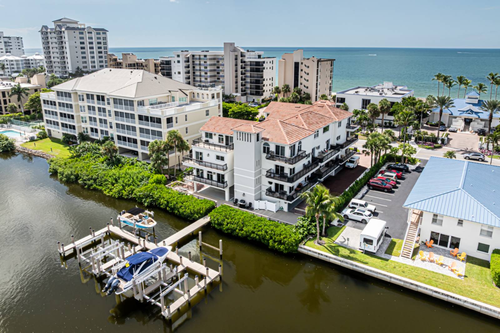 Welcome to Sausalito at Vanderbilt Beach! This tri-level waterfront townhome offers expansive bay views from 2nd & 3rd level, end/corner unit, wrap around balconies. There's a designated covered parking space and storage locker (w/2 adult bikes & beach equipment). The residence also provides a private beach access directly across the street.
