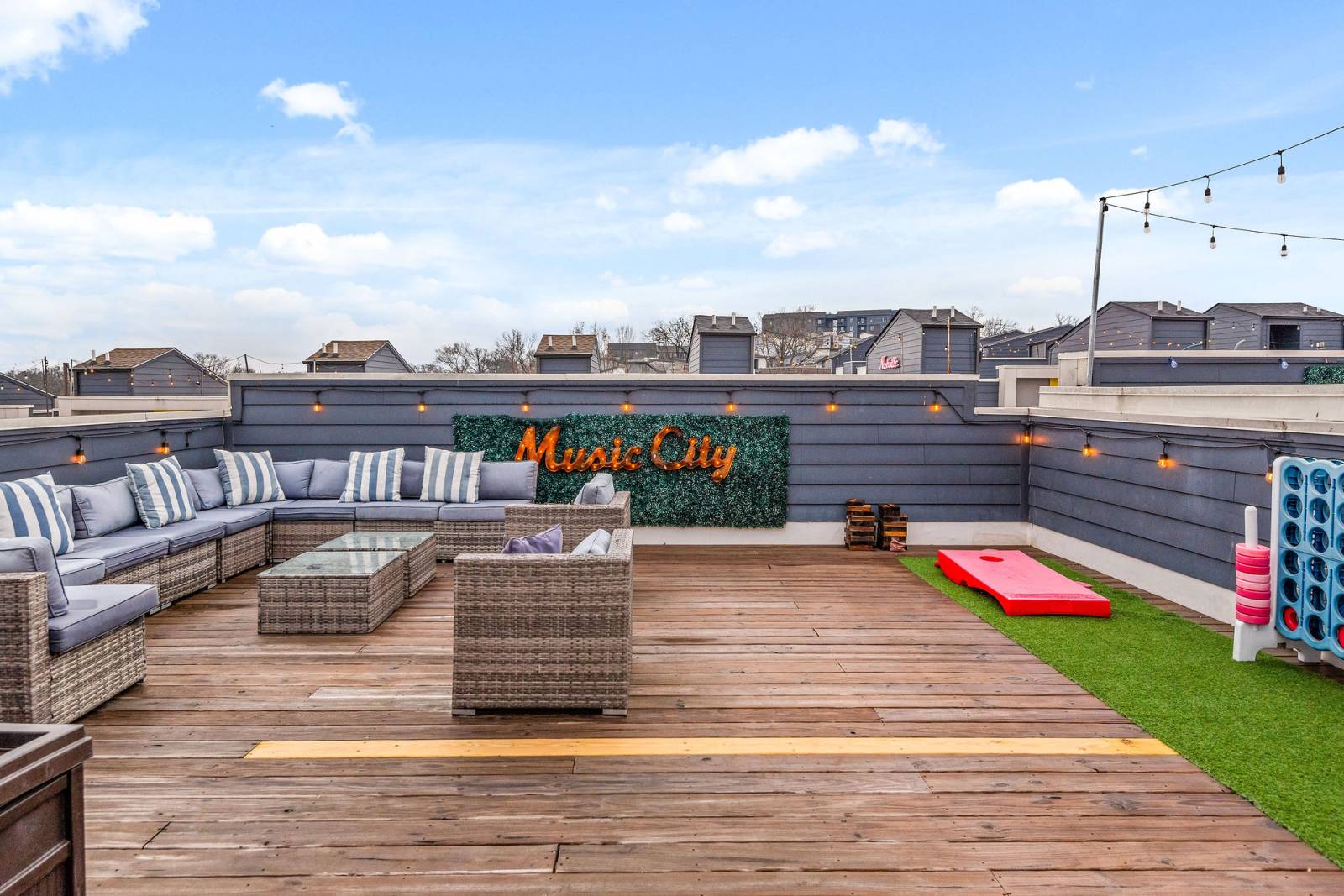 Head up to the rooftop deck and kick back with oversized games like cornhole, giant Jenga, and Connect 4 while soaking in the city vibes. Step outside and you’ll find yourself just minutes from Nashville’s best dining, shopping, and entertainment. From the chic interiors to the unbeatable location, this spot has everything you need to create lasting memories.