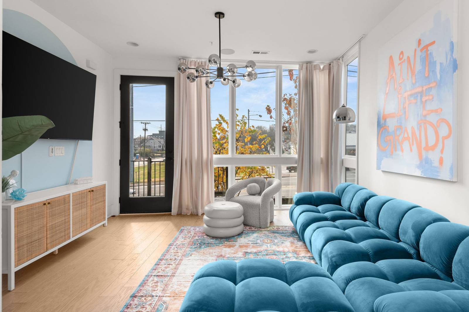 Soak up the best of Nashville living in this bright, stylish corner condo. With its modern California-inspired design and playful Music City touches, the space blends comfort with personality. Cook up a meal in the sleek chef’s kitchen with quartz countertops, relax in the spacious primary suite, or head up to the rooftop deck to take in sweeping skyline views. Just a short drive from downtown, the condo is outfitted with everything you need for a smooth stay, including Smart TVs, a coffee maker, and easy keyless entry.