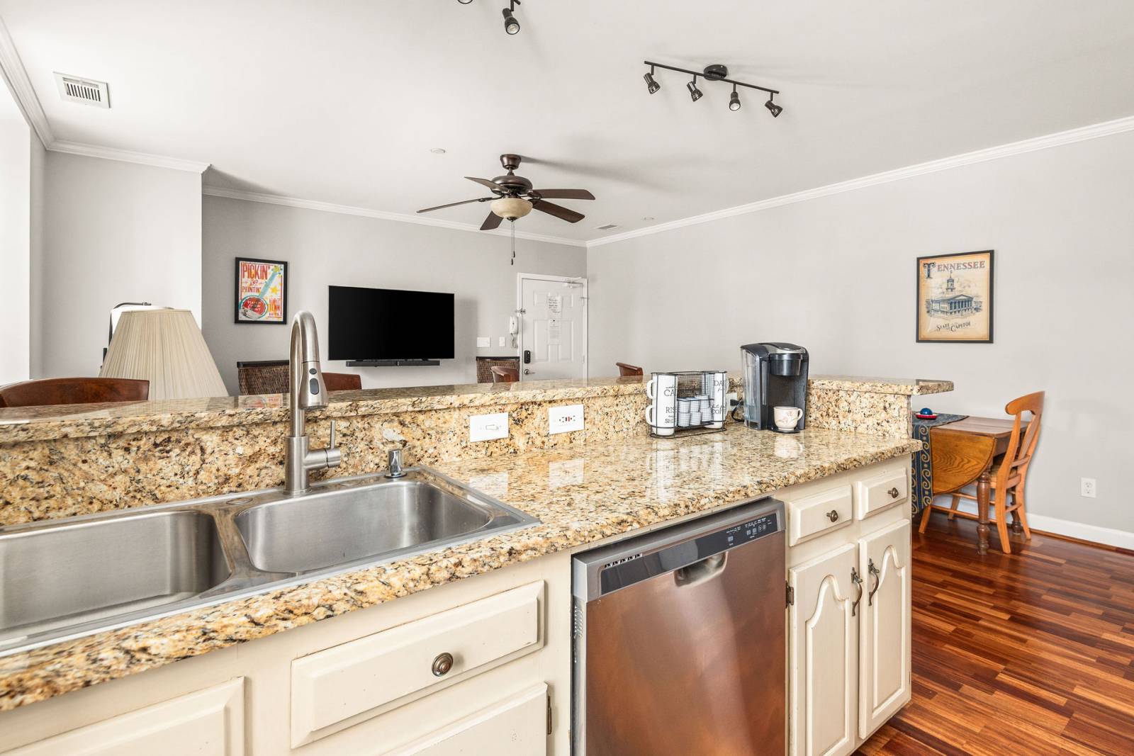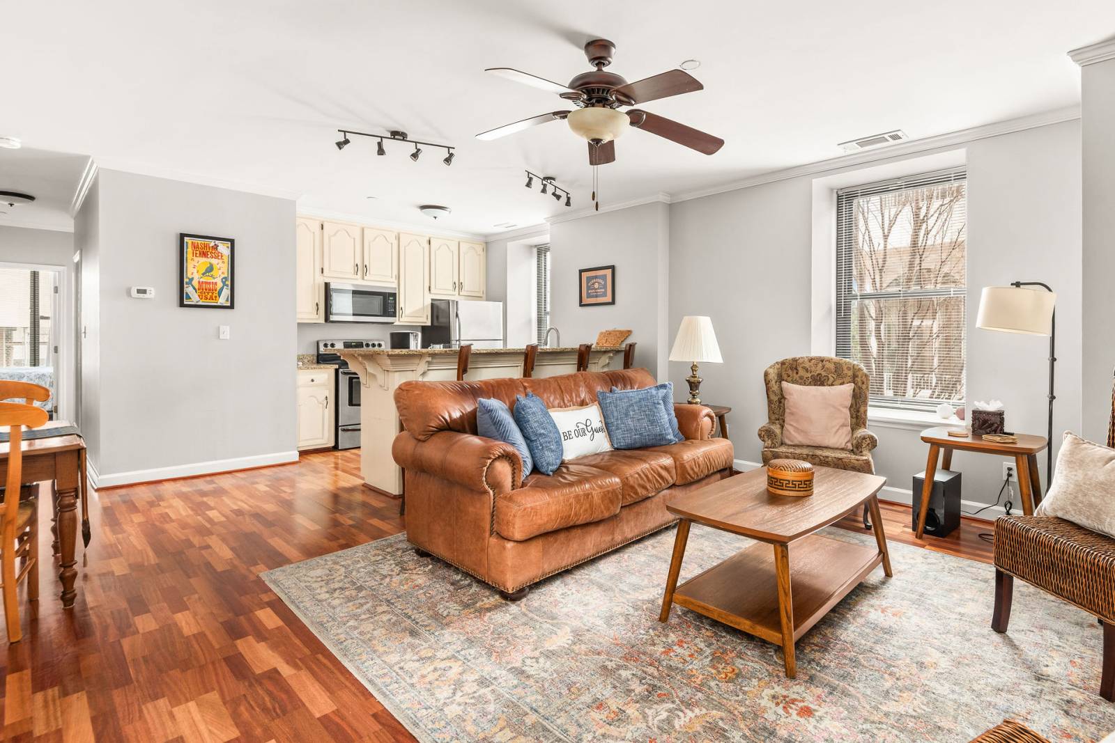 Polk 102 puts you in the heart of historic downtown Nashville, where music, history, and world-class dining are just outside your door. This 2BR/2BA main-level condo blends turn-of-the-century charm with all the modern comforts you need for a hassle-free stay. Cook a meal in the fully equipped kitchen, relax in the living room, or unwind after a day of exploring. With everything you need for a short or extended stay—comfortable beds, in-unit washer/dryer, and reliable Wi-Fi—you’re perfectly positioned to experience Music City like a local.