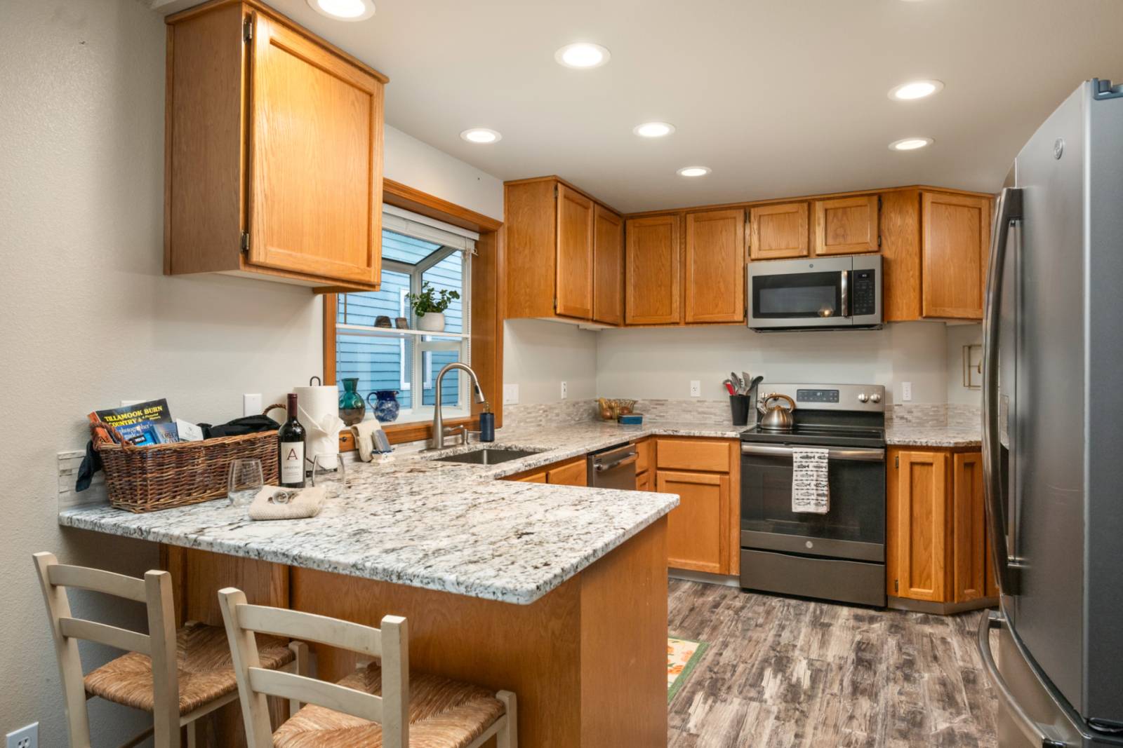The adjacent dining area and fully stocked kitchen make it easy to gather, cook, and connect. With updated appliances, generous counter space, and everything you need to prepare meals, you’ll feel right at home.