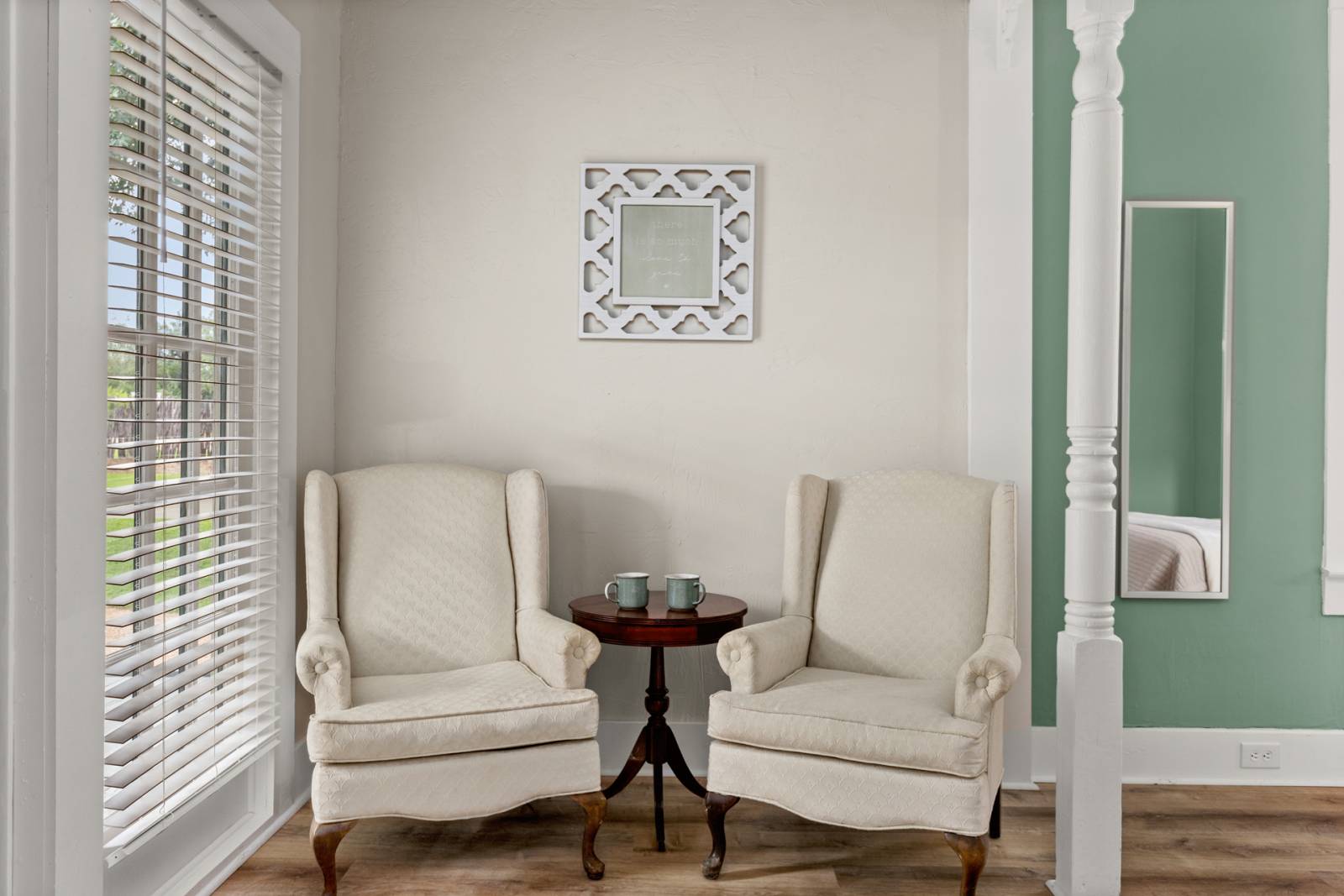Discover tranquility at #15 The Back Porch, a one-bedroom king bed suite on the backside of The Country House. Perfect for couples, this charming suite offers a peaceful escape for two.