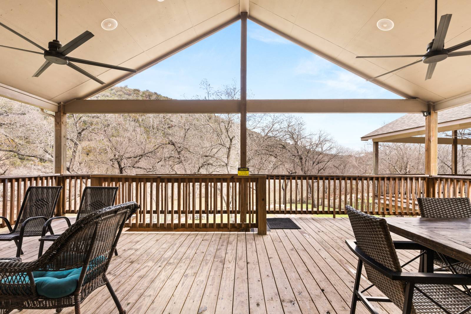 Enjoy outdoor amenities like the downstairs outdoor kitchen and bar. Tube rental and shuttle services are conveniently located on both sides of the property for river trips. The adventure doesn't end with tubing – engage in thrilling activities like rafting, canoeing, kayaking, and paddleboarding. Even when summer subsides, the fun continues with year-round fly fishing, as thousands of rainbow trout are released, transforming the Guadalupe River into a hot spot for fishing enthusiasts.