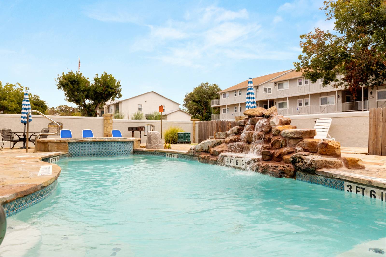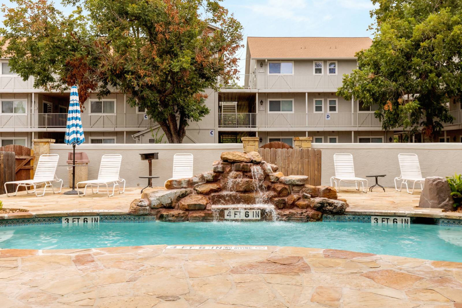 "Wonderful location to access all Austin, New Braunfels and San Antonio have to offer. Quiet complex. Unit overlooks pool with waterfall and has wonderfully sized master bedroom and large sectional to spread out on."