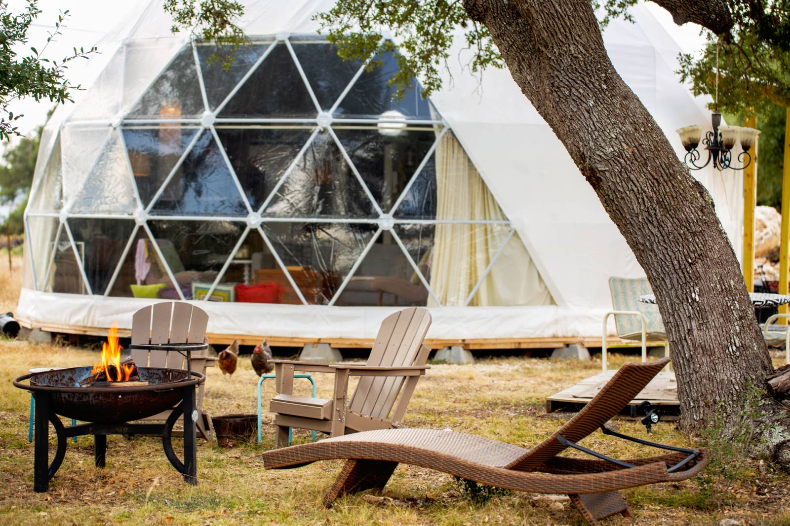 Unique geodesic dome with stylish, comfortable furnishings